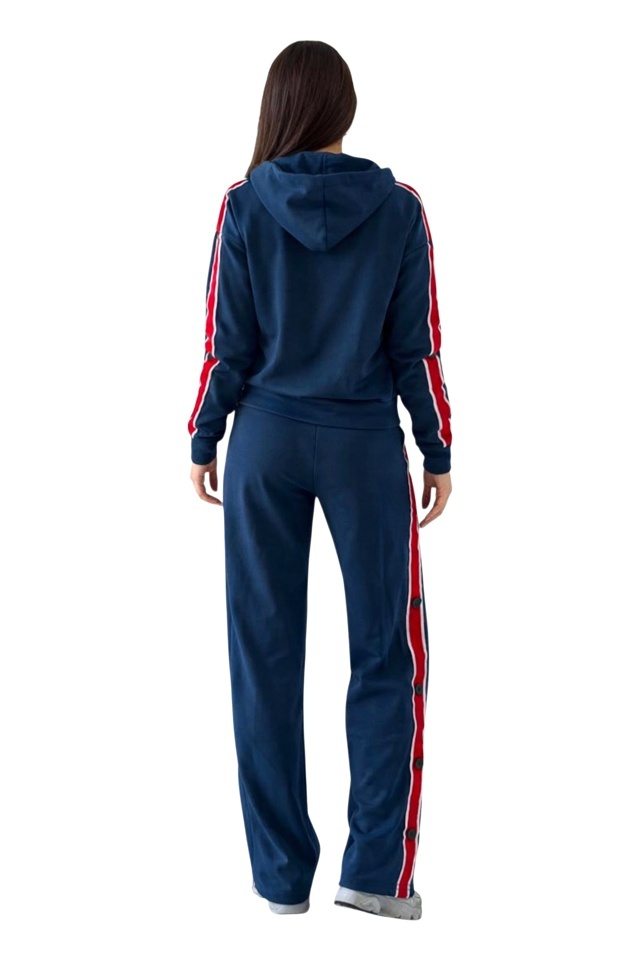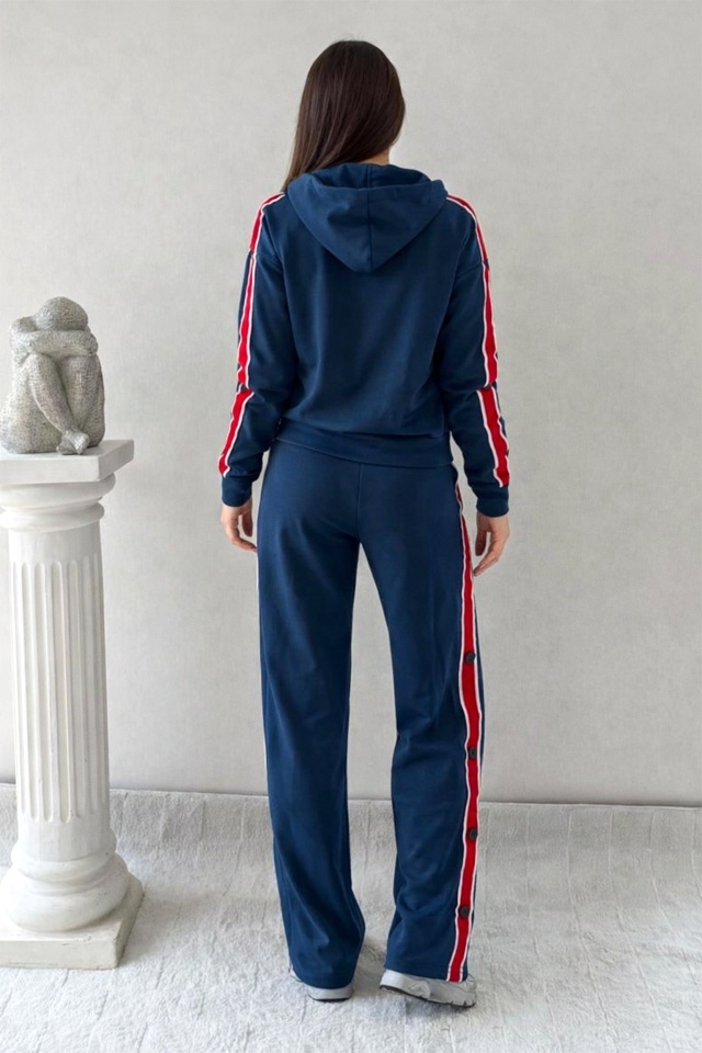Design activ pentru tinute urbane. Set creat pentru ritmul tau. Designul sport-casual este accentuat de benzile laterale contrastante, care alungesc vizual silueta si adauga dinamica intregului ansamblu. Hanoracul are croiala lejera, este prevazut cu gluga fixa si inchidere cu fermoar frontal, oferind functionalitate si adaptabilitate. Benzile contrastante aplicate pe maneci completeaza linia sportiva si adauga un accent modern. Pantalonii au croiala dreapta si talie elastica, asigurand confort pe intreaga durata a purtarii. Detaliile laterale cu capse decorative contribuie la un aspect urban si diferentiat. Setul este realizat dintr-o tesatura elastica, placuta la atingere, conceputa pentru purtare zilnica. Materialul permite miscari naturale, mentine forma produsului si ofera rezistenta in timp, fiind potrivit pentru activitati lejere, plimbari sau tinute casual de zi. Produsul poate fi purtat atat ca set complet, cat si separat, piesele fiind usor de integrat in alte combinatii sport sau casual. Caracteristici trening: Stil: sport-casual, urban Material: tesatura moale, elastica Croiala: lejera, confortabila Utilizare: activitati zilnice, plimbari, tinute relaxate ? Hanorac Inchidere: fermoar frontal Gluga: fixa, cu snur de ajustare Maneci: lungi Detalii: benzi laterale contrastante pe maneci Buzunare: buzunare laterale functionale ? Pantaloni Croiala: dreapta, cu cadere fluida Talie: elastica Detalii laterale: benzi contrastante Sistem lateral: capse decorative pe lateral Lungime: standard lunga Buzunare: buzunare laterale functionale Eticheta produsului conține informații esențiale referitoare la întreținerea și spălarea corectă a articolelor vestimentare. Imaginile Fashionforyou au caracter informativ, iar nuanta, tonul si intensitatea culorii pot varia in functie de monitor/ecran telefon.