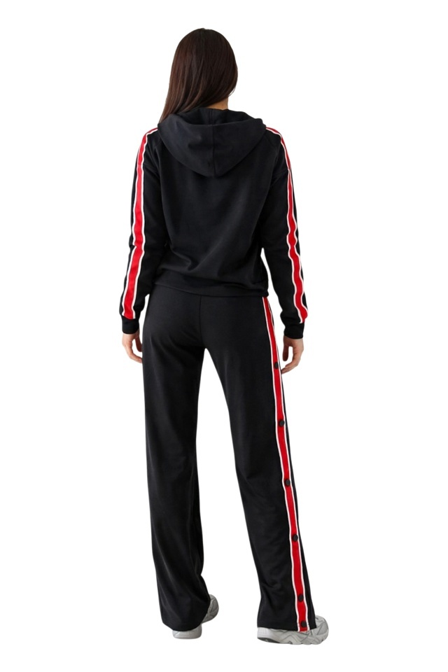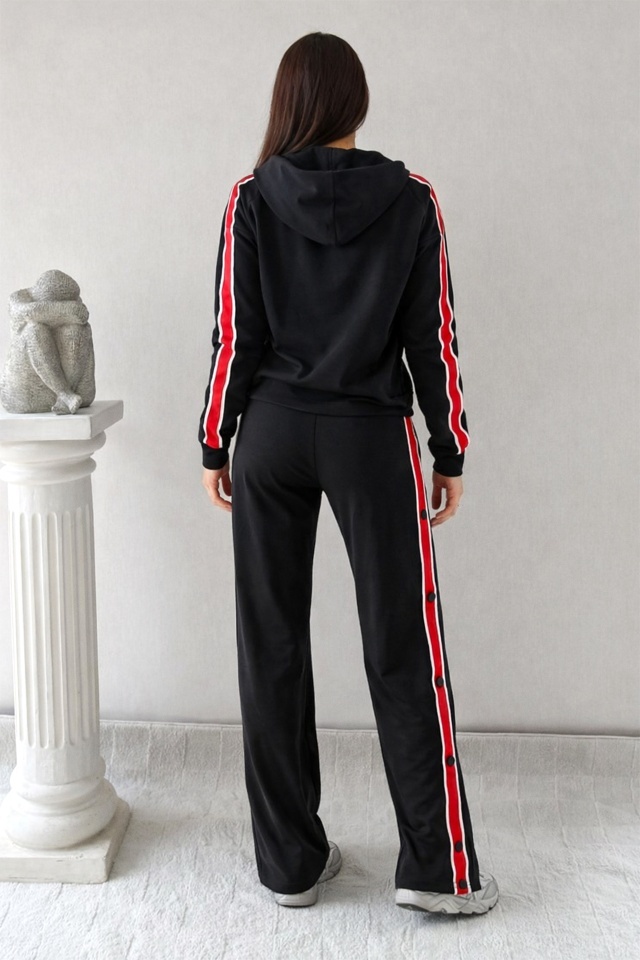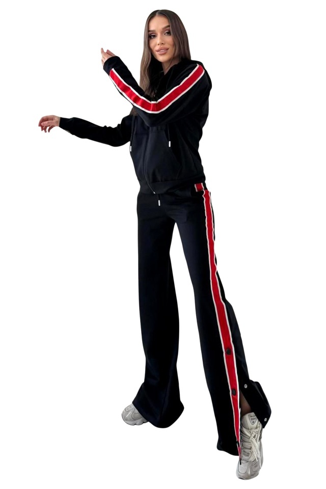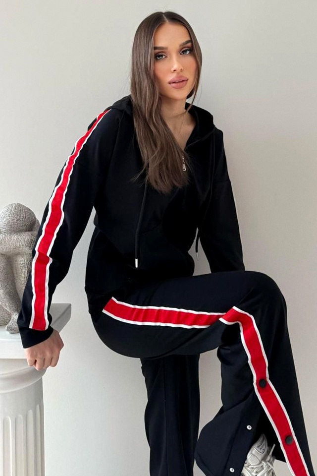 Trening cu fermoar SporDIVA, hanorac cu gluga si pantaloni, Negru