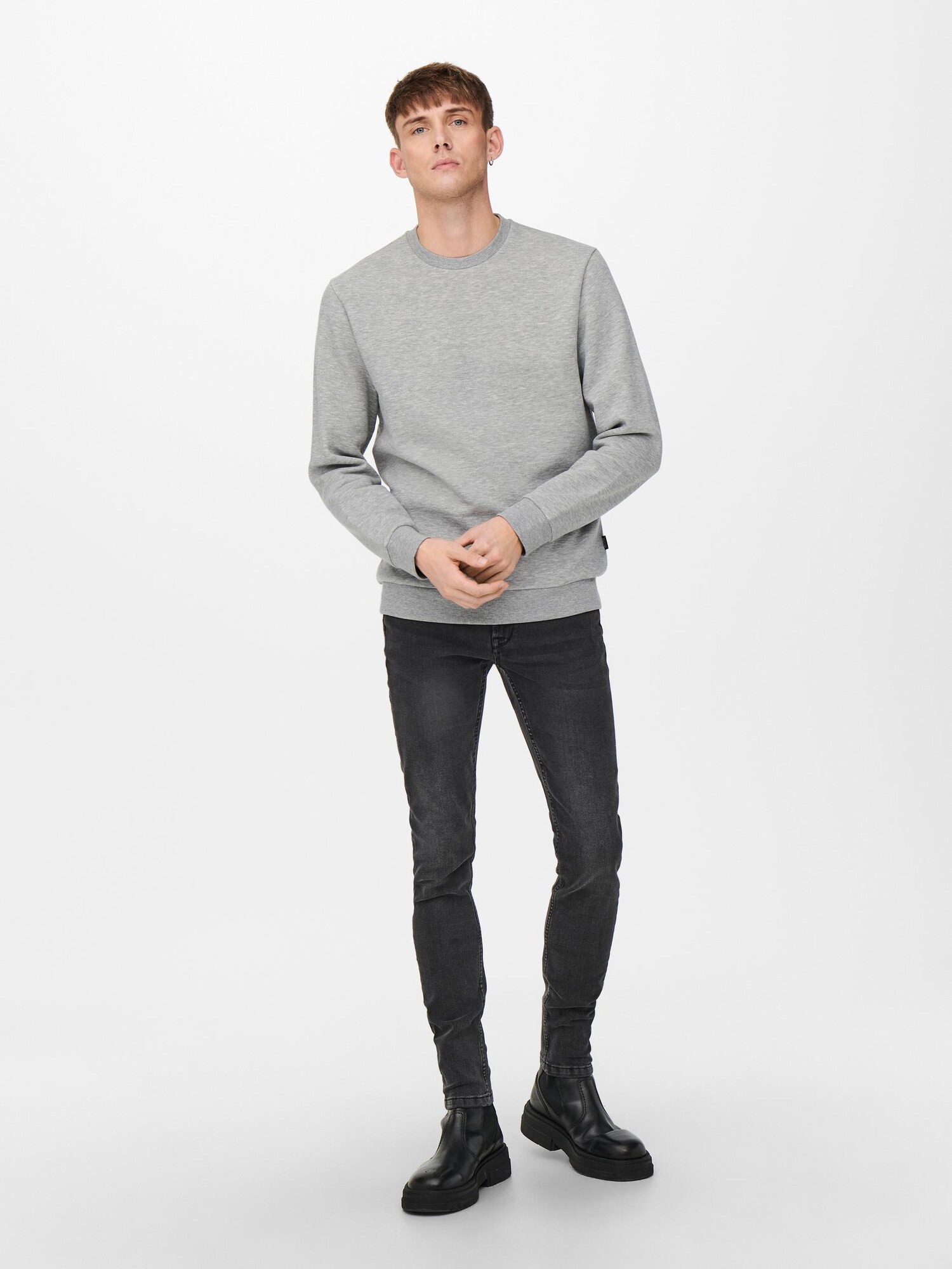 Only & Sons Bluză de molton gri amestecat / negru