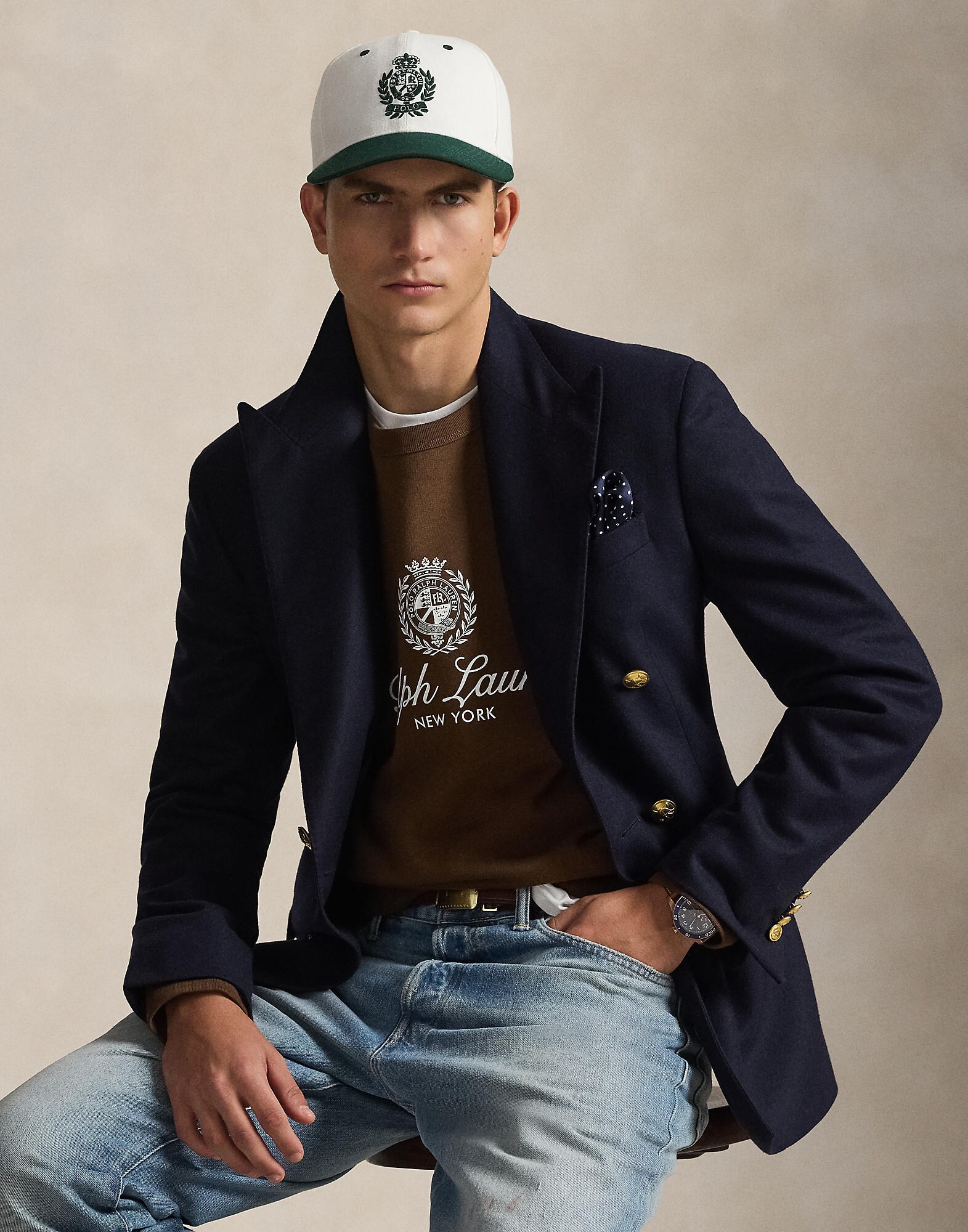 Polo Ralph Lauren Bluză de molton maro / alb