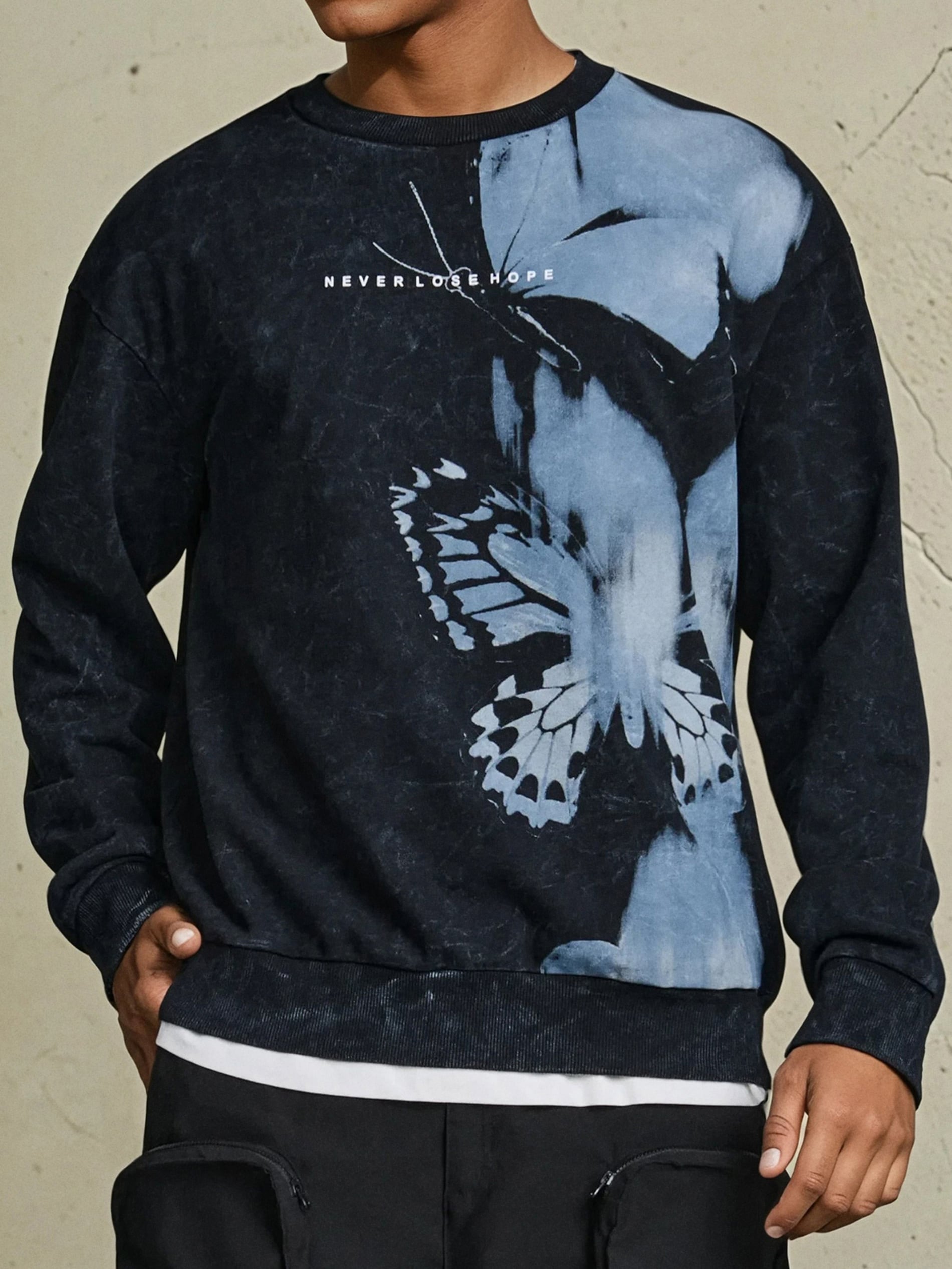Sinsay - Hanorac cu efect prespălat - negru