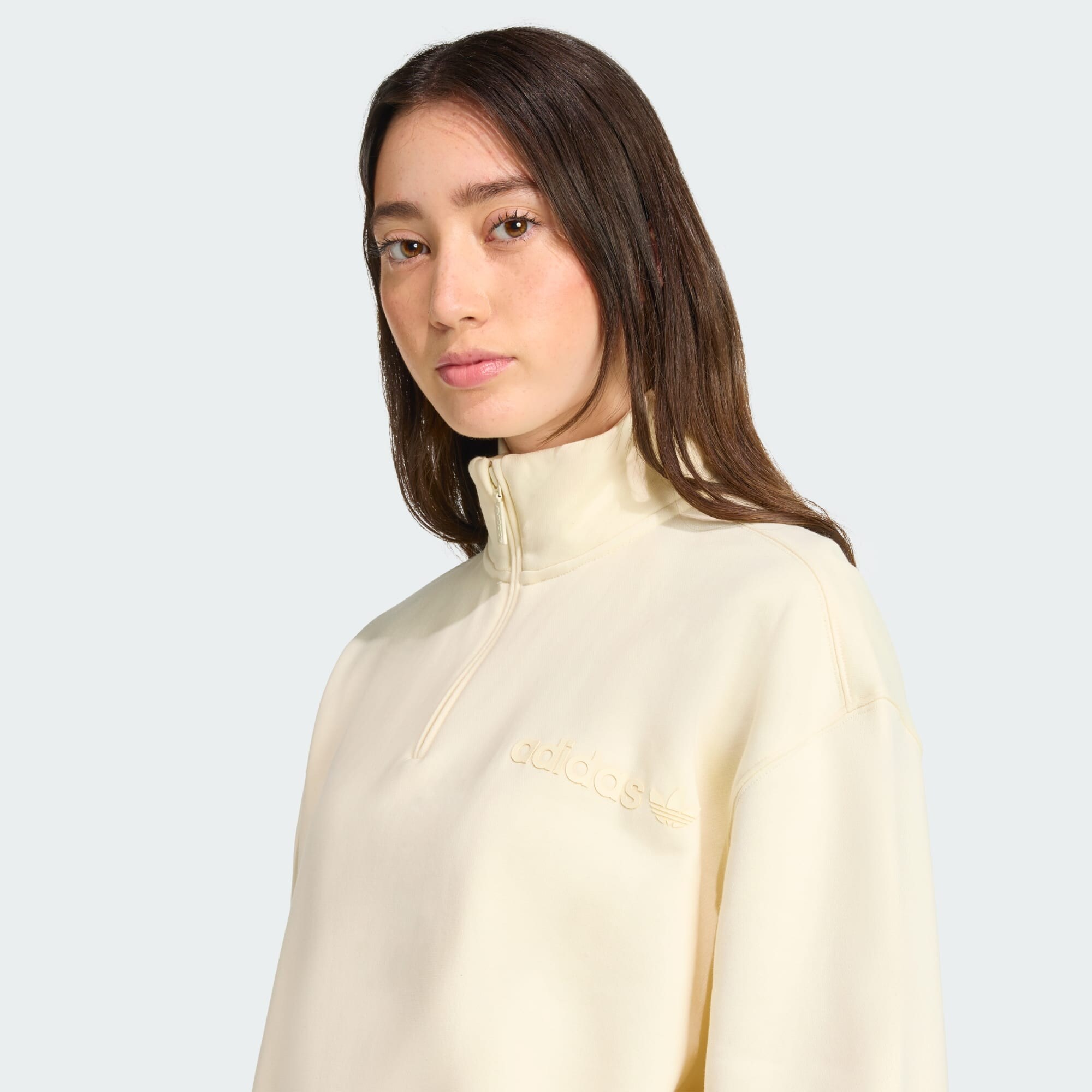 Design: Manșete cu striații, Umăr întretăiat, Semifermoar; Tip de închidere: Fermoar; Material: Material sweat; Decolteu: Pulover troyer; Imprimeu: Monocrom; Detalii: Cusături ton în ton, Material moale; Croi: Croi lejer; Lungime mâneci: Mâncecă lungă; Lungime: Lungime normală