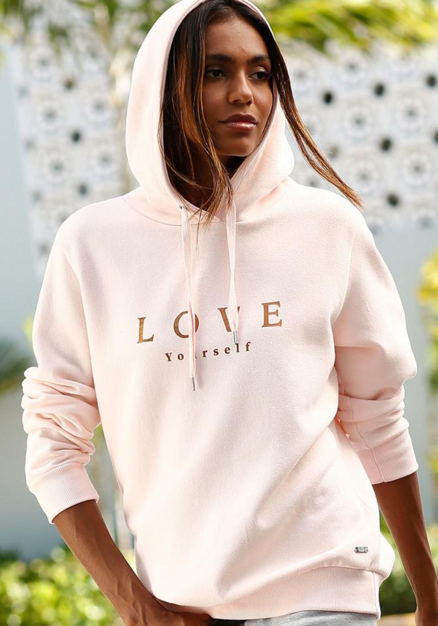 Material: Material sweat; Decolteu: Cu glugă; Imprimeu: Mottoprint; Croi: Croi normal; Lungime mâneci: Mâncecă lungă; Lungime: Lungime normală