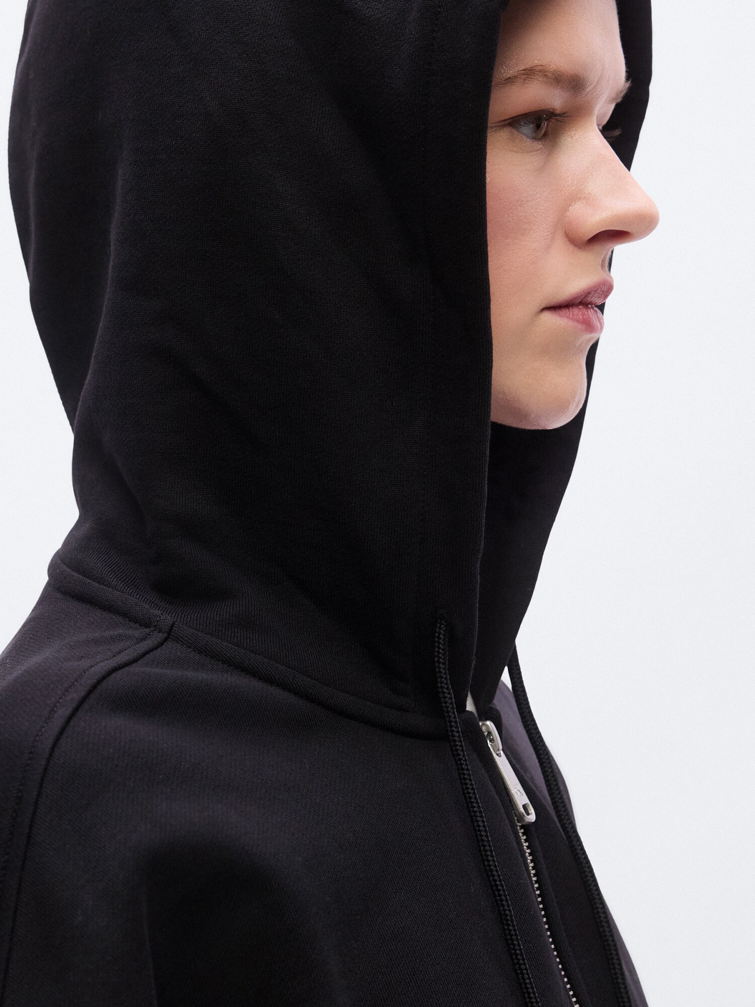 Design: Tiv drept, Glugă cu șiret, Manșete cu striații, Umăr întretăiat, Buzunare laterale deschise; Tip de închidere: Fermoar; Material: Material sweat; Decolteu: Cu glugă; Imprimeu: Monocrom; Detalii: Broderie; Detalii: Logo brodat, Cusături ton în ton, Material moale; Croi: Croi lejer; Lungime mâneci: Mâncecă lungă; Lungime: Lungime normală