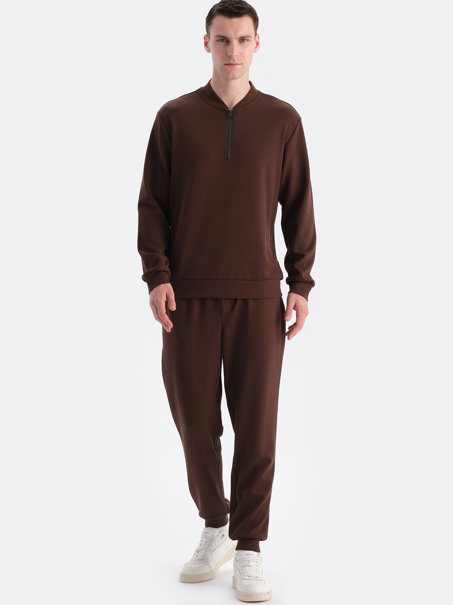 Design: Semifermoar; Material: Material sweat; Decolteu: Pulover troyer; Imprimeu: Monocrom; Detalii: Cusături ton în ton; Croi: Croi normal; Lungime mâneci: Mâncecă lungă; Lungime: Lungime normală