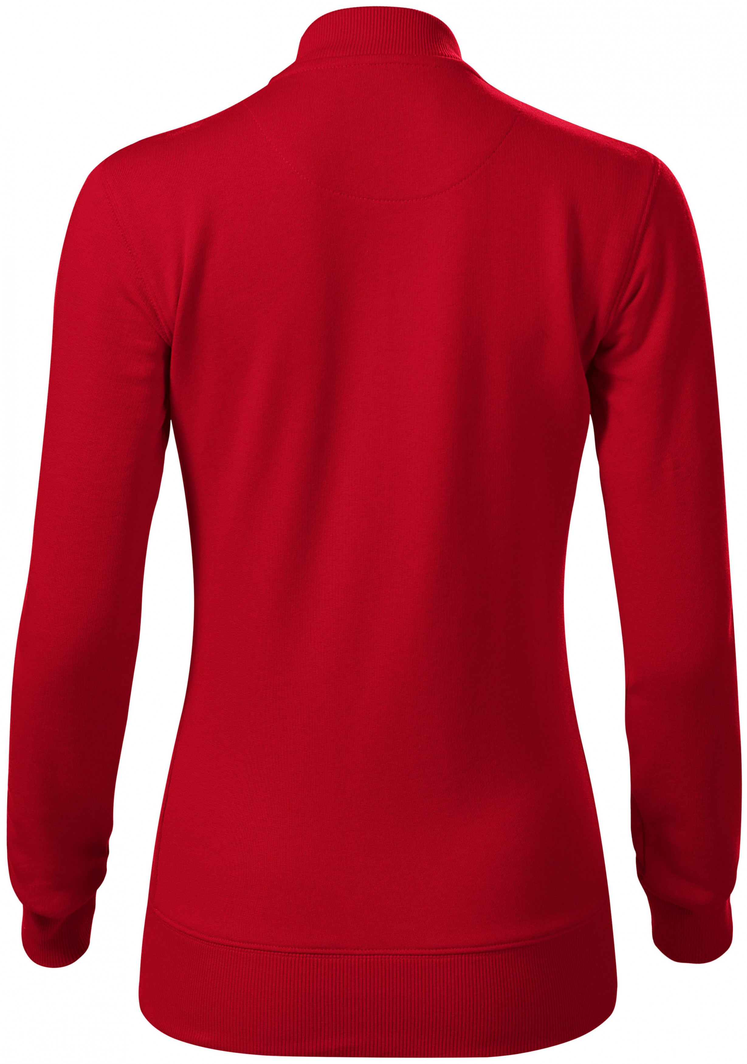 Hanorac de bumbac pentru femei, cu buzunare și fermoar, fără glugă.