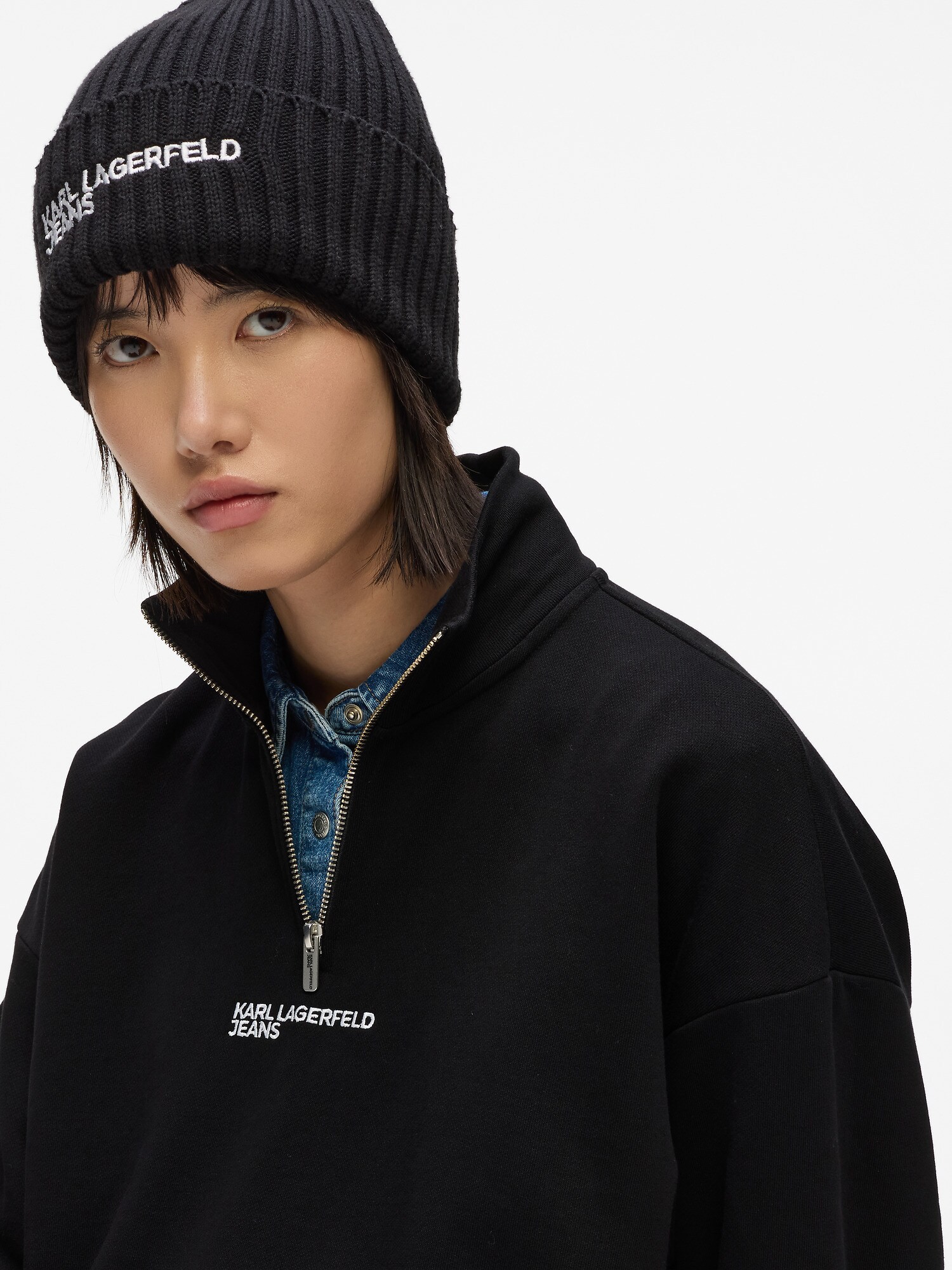KARL LAGERFELD JEANS Bluză de molton negru / alb natural
