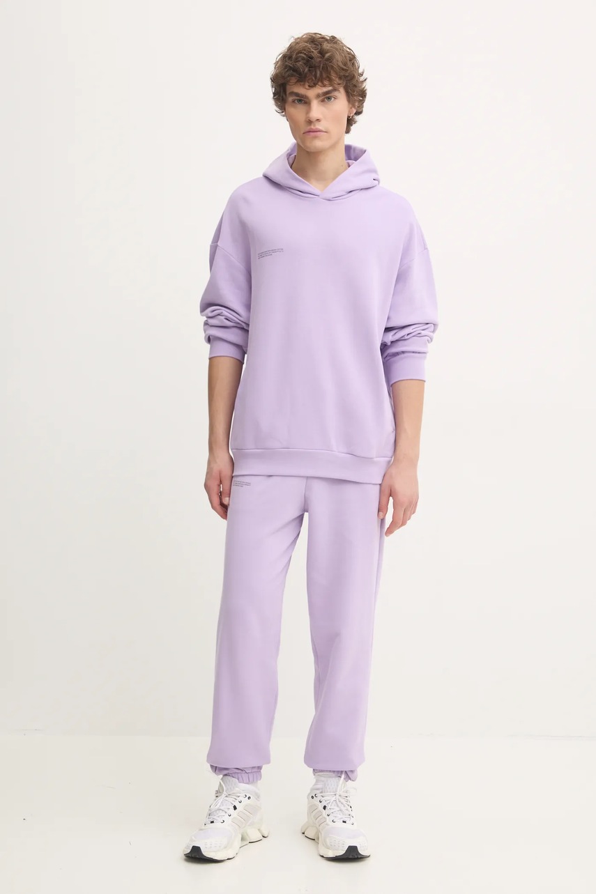 PANGAIA hanorac bumbac organic, culoare violet, cu glugă, croială lejeră, buzunare, elastice la manșă și la bază, mărime L
