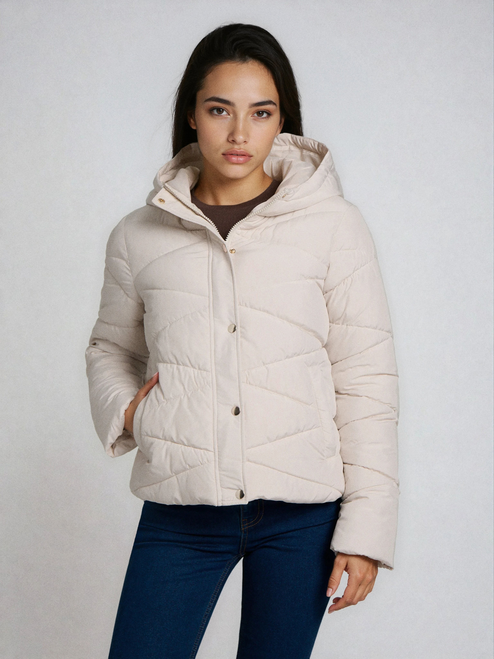 Sinsay - Geacă puffer matlasată cu glugă - crem