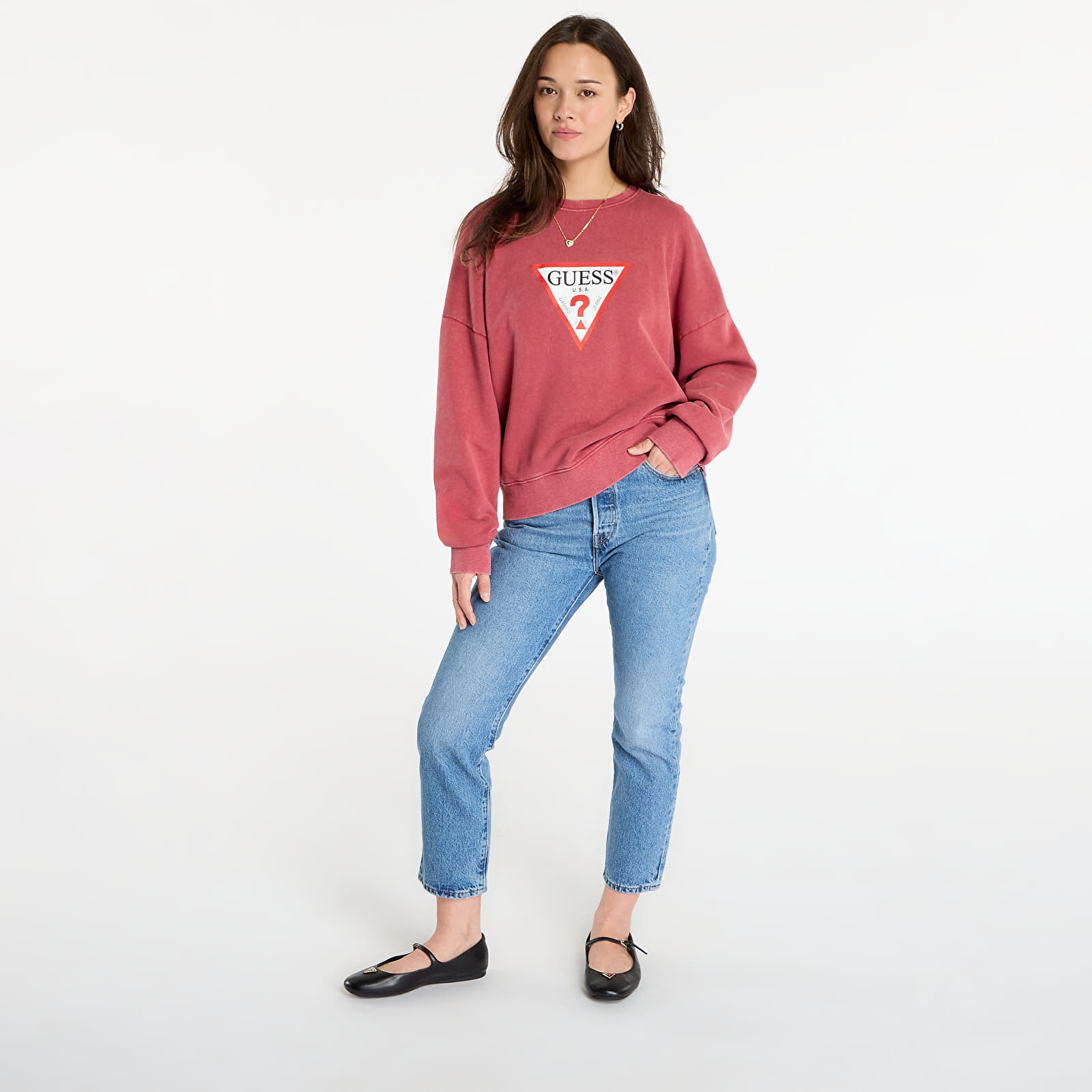 Sweatshirt Guess Jeans Cn Os Iconic Tria Washed Red M