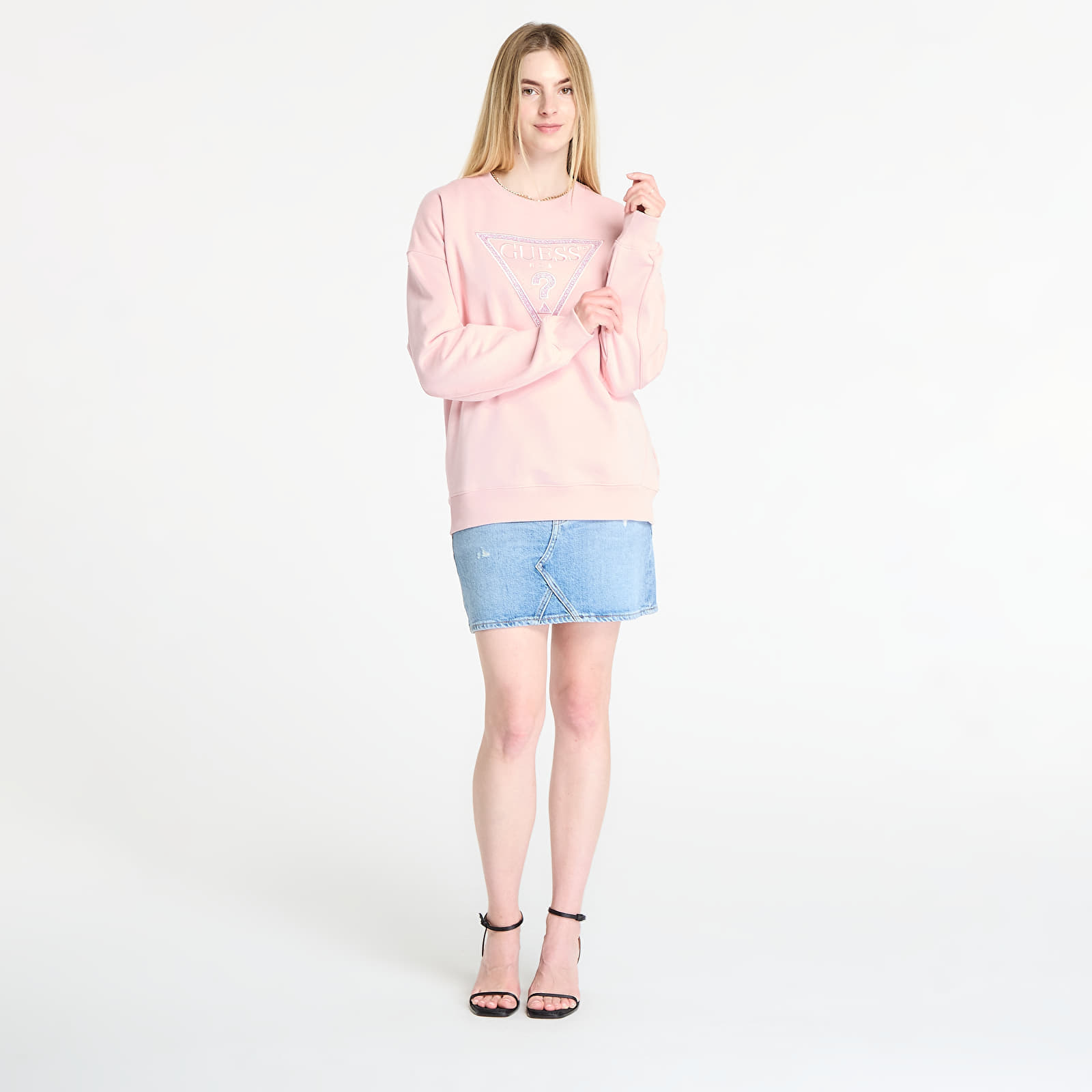 Sweatshirt GUESS Ls Triangle Glitter Sweatshirt Pink XS