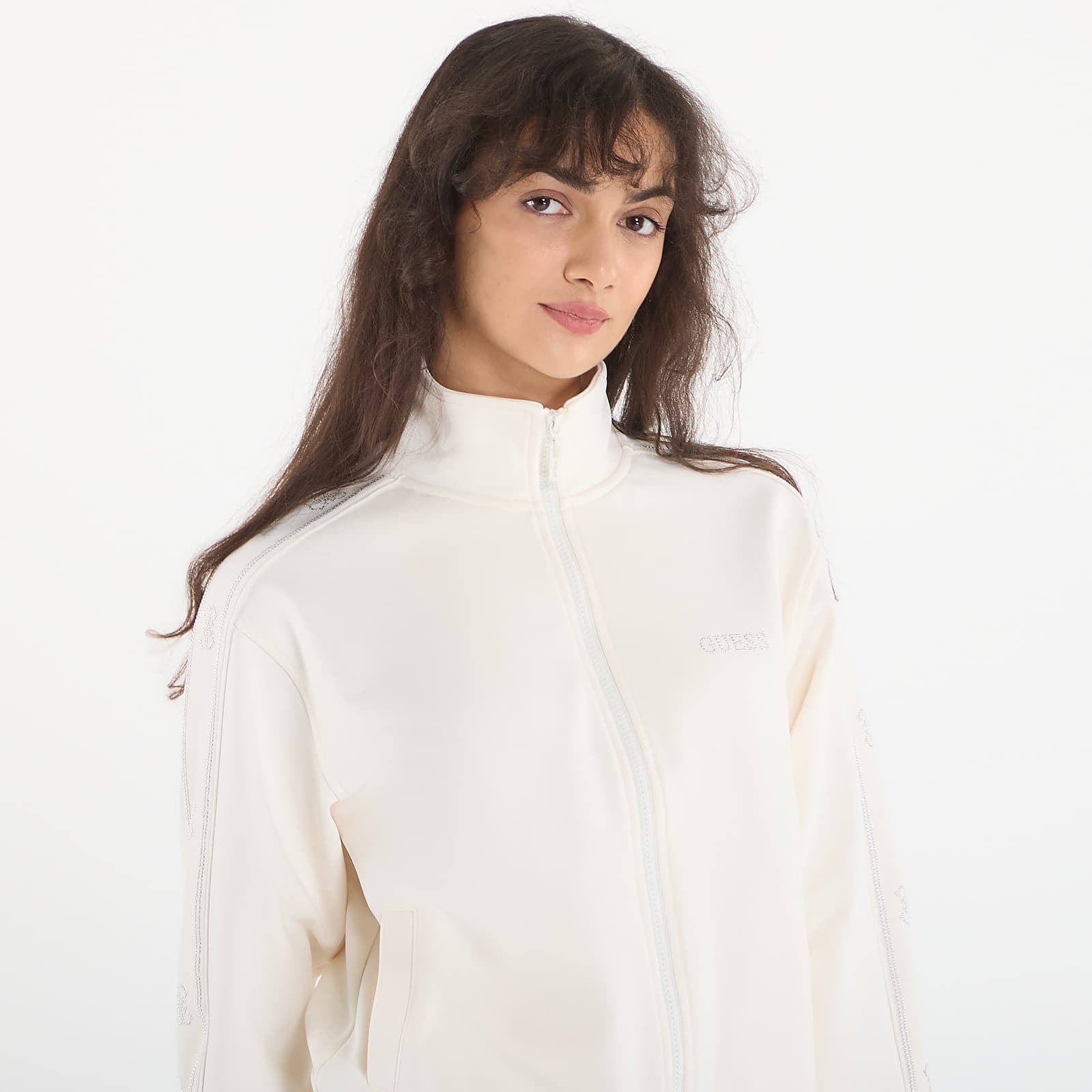 Sweatshirt GUESS Octavia High Neck Full-Zip Sweat White Glam M