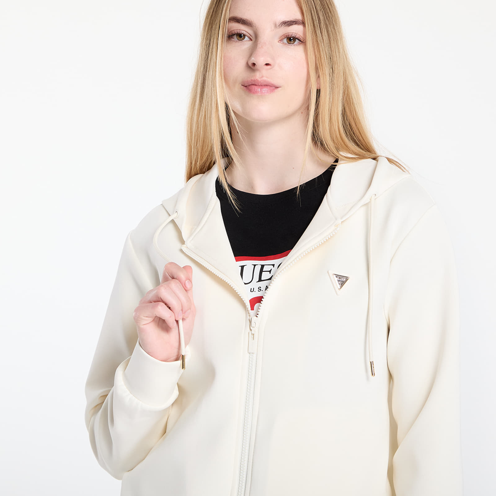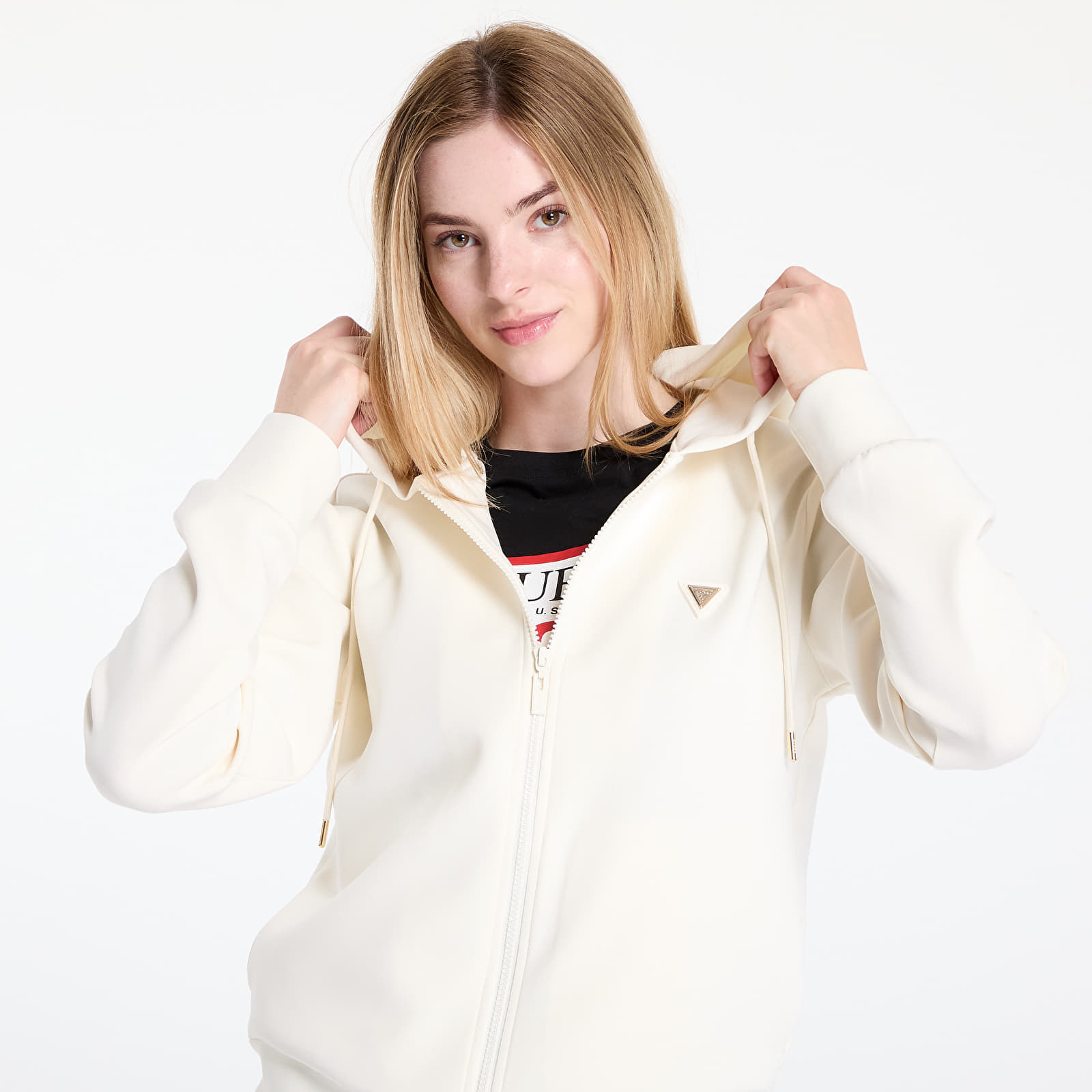 Sweatshirt GUESS Olympe Full Zip Hoodie Sweatshirt Cream XS