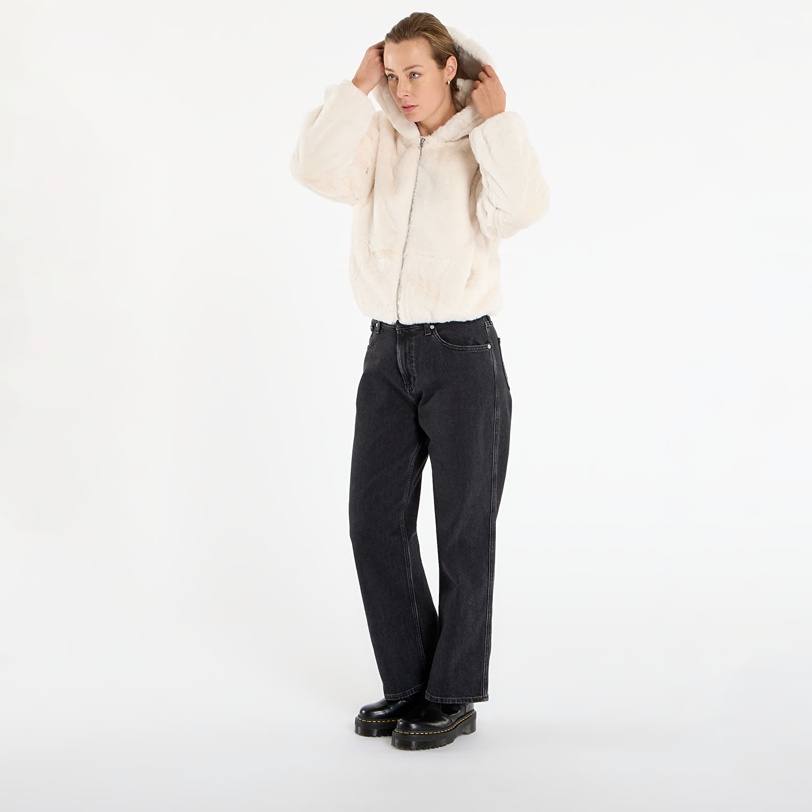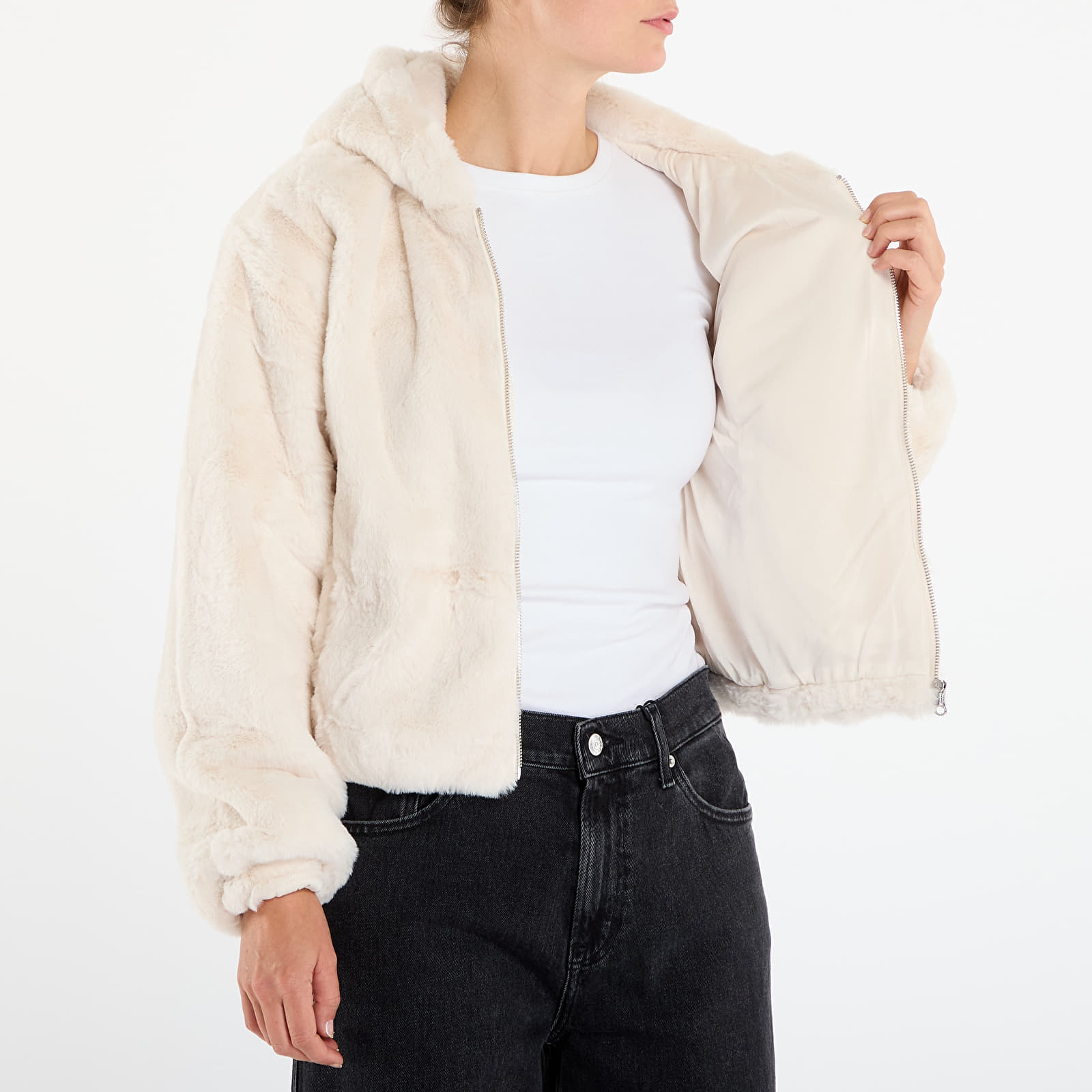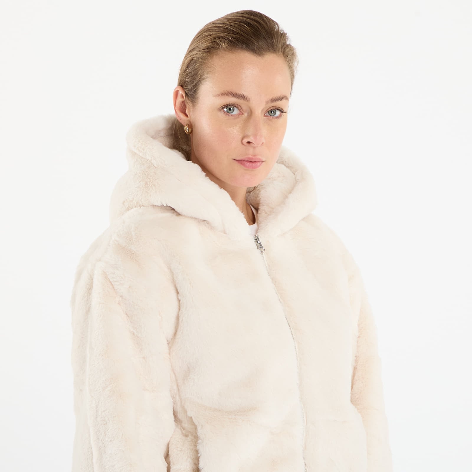 Sweatshirt Urban Classics Ladies Full Zip Faux Fur Hoodie White Sand L