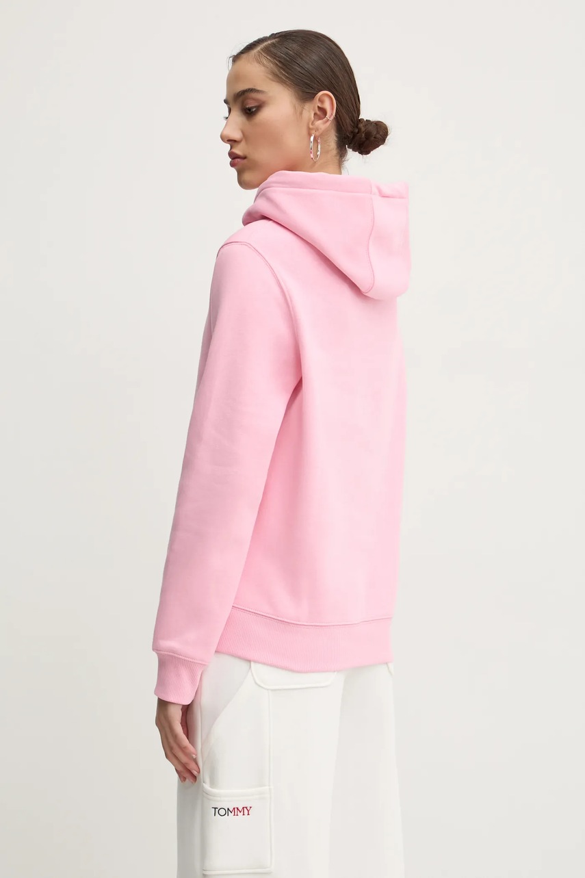 Tommy Jeans bluză culoarea roz, cu glugă, uni, DW0DW19958