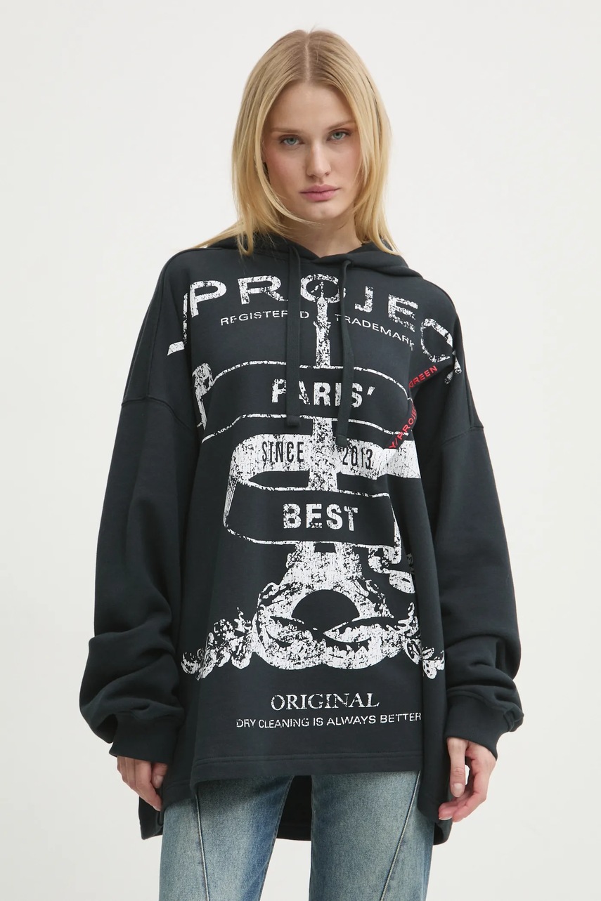 Y/Project hanorac de bumbac EVERGREEN PARIS BEST PINCHED HOODIE culoarea negru, cu glugă, cu imprimeu, 204SH002