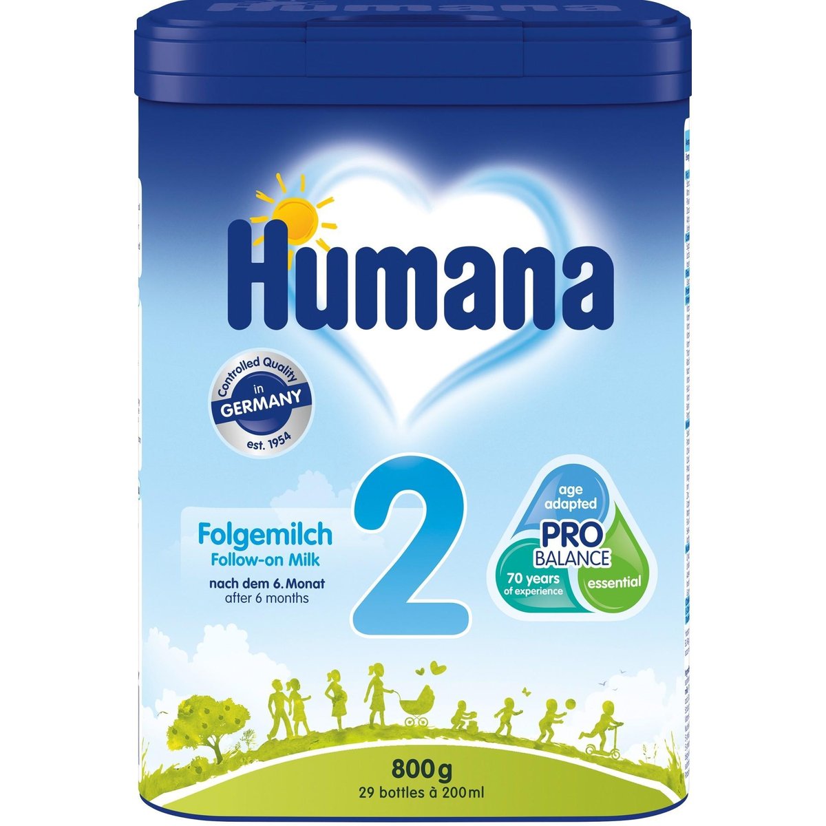 Lapte formula de continuare HUMANA 2, de la 6 luni Lapte de continuare (de la 6 luni)Art.nr.: 72019Cantitate neta: 800 g e (29 portii x 200ml preparat lichid).• Calitate controlata in Germania din 1954Humana 2 – când se folosesteCopilul dumneavoastra creste de la o zi la alta si nevoile sale nutritionale se modifica. Humana 2 este conceput pentru vârsta de la 6 luni (când alimentatia sugarului se diversifica), ca parte a unei diete echilibrate si ca suport pentru cresterea si dezvoltarea sugarului.În sprijinul cresterii copilului dumneavoastraCu fiecare zi ce trece, copilul dumneavoastra este tot mai mare, devine tot mai activ si incepe sa exploreze hrana solida. Laptele de continuare HUMANA 2 contine lactoza ca singura sursa de carbohidrati si este imbogatit cu toti nutrientii esentiali necesari in cantitati adaptate vârstei:• DHA (acid docosahexaenoic) – contribuie la dezvoltarea normala a vederii sugarului pâna la vârsta de 12 luni (efectul benefic se obtine la ingerarea unei cantitati zilnice de 100mg DHA)• GOS (galacto-ologozaharide) - fibre• ALA (acid alfa-linolenic) – un acid gras esential ce contribuie la dezvoltarea normala a creierului si a tesutului nervos• Vitamina C – contribuie la functionarea normala a sistemul imunitar• NucleotidePRO BALANCE este promisiunea noastra fata de tine si copilul tau de a-i furniza acestuia toti nutrientii necesari, pe baza experientei noastre de peste 65 de ani in stiinta si cercetare.Humana iubeste copiii. În fiecare zi suntem inspirati de mame si de copiii lor. Ascultam si suntem atenti la asteptarile parintilor si ne ghidam dupa nevoile celor mici. Stiind ca, fara indoiala, laptele matern este cea mai buna hrana a sugarilor, Humana este motivata de cele mai recente descoperiri din natura si stiinta pentru a oferi o nutritie adecvata sugarilor si copiilor mici.Caracteristicile ambalajuluiSiguranta: Închiderea exterioara de siguranta, membrana interioara de sigilare si marginea inferioara ofera protectie continutului din toate partile. Ambalaj fara bisfenol A.Igiena: Suportul integrat al linguritei dozatoare si deschiderea larga a cutiei minimizeaza contactul pielii cu pudra de lapte. Odata inchis, capacul cutiei creeaza o bariera excelenta impotriva umiditatii.Comoditate: Posibilitatea de a lucra cu o singura mâna si de a masura corect cantitatea de pudra din lingurita dozatoare prin nivelarea continutului la coltul special.AVIZ IMPORTANT! Laptele matern este cea mai buna hrana pentru copilul tau. Ministerul Sanatatii si Organizatia Mondiala a Sanatatii recomanda alaptarea exclusiva pentru sugarii cu vârsta de pâna la 6 luni. Laptele de continuare nu ar trebui utilizat ca un inlocuitor al laptelui matern in primele 6 luni si ar trebui introdus in alimentatie dupa vârsta de 6 luni ca parte a unei diete echilibrate.Cresterea si dezvoltarea individuala a copilului tau poate face necesara introducerea mai devreme a unei formule de continuare ca parte a unei alimentatii echilibrate.Consultati medicul sau moasa inainte de a incepe hranirea sugarului cu o formula de lapte.