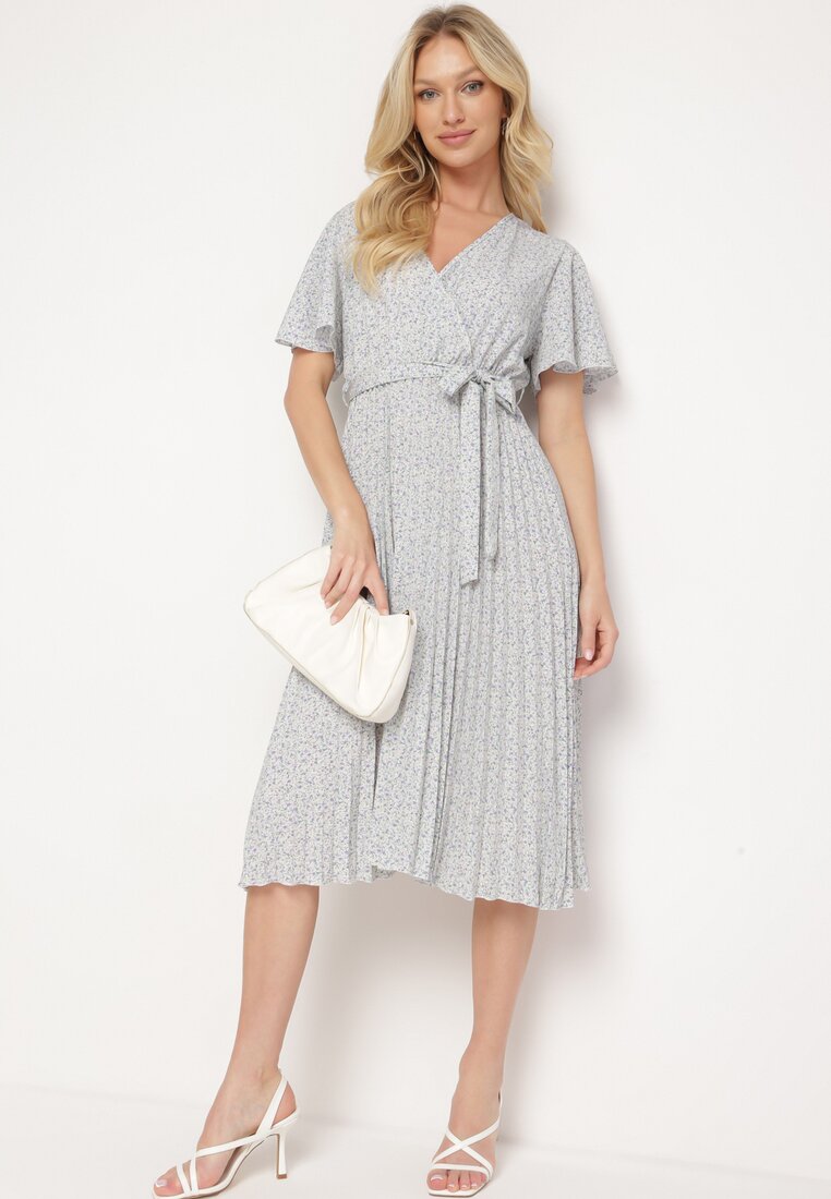 Rochie Bej-Violet Cloș cu Elastic în Talie și Cordon din Material Prissa