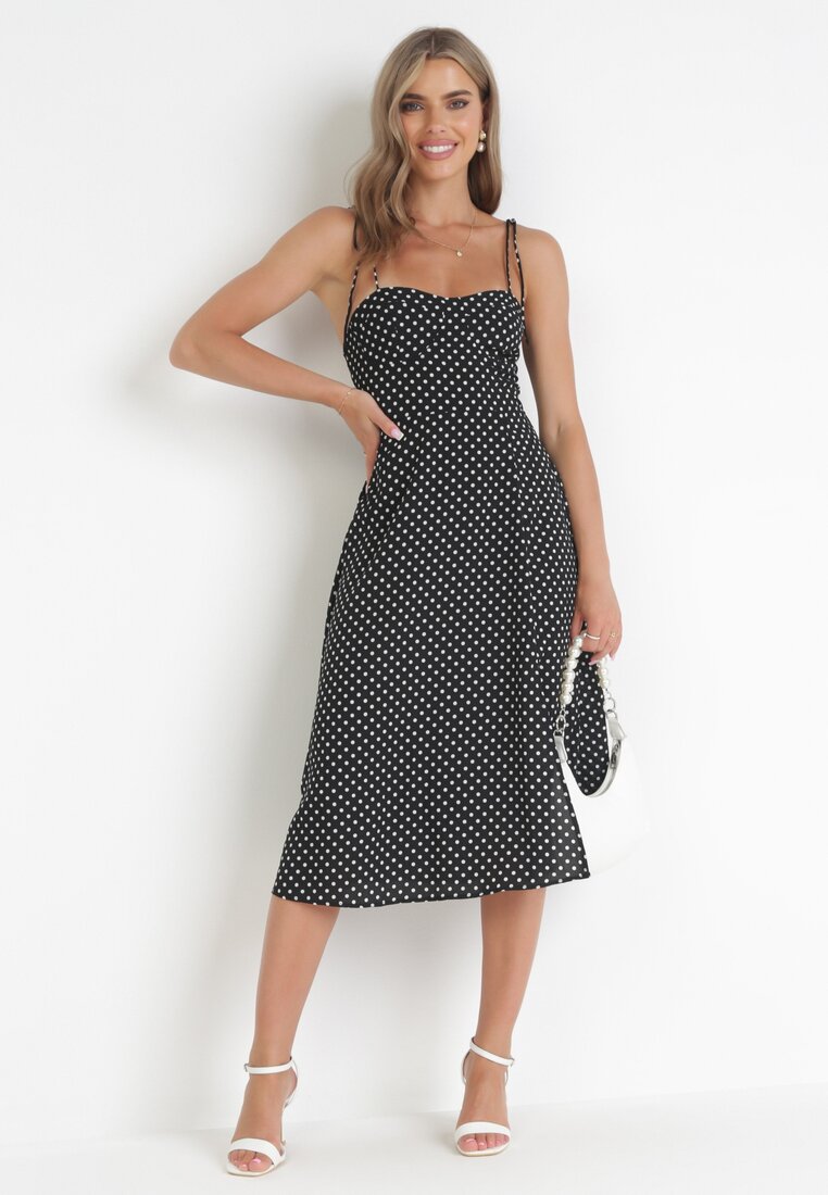 Rochie Neagră Midi cu Buline pe Bretele Ionttis
