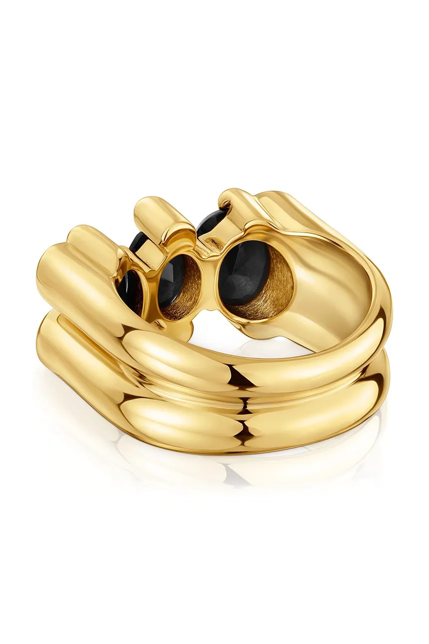 Inel din colectia Tous. Model cu onix confectionat din argint 925, placat cu aur de 18 carate.