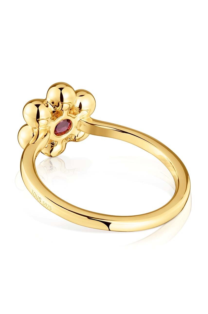Inel din colectia Tous. Model cu un element decorativ, confectionat din pietre naturale si elemente decorative din argint 925 placat cu aur.