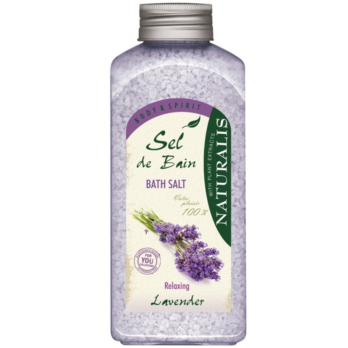 Sarea de baie Naturalis Lavender „PENTRU RELAXARE” de baie catifeleaza si regenereaza perfect pielea, relaxeaza mintea. Este foarte eficienta impotriva stresului, stimuleaza muschii, calmeaza durerile si starile de disconfort.Utilizare: puneti o cantitate adecvata de sare in apa calda, de preferat sub jetul de apa. Dupa baie, faceti un dus cu apa calduta.