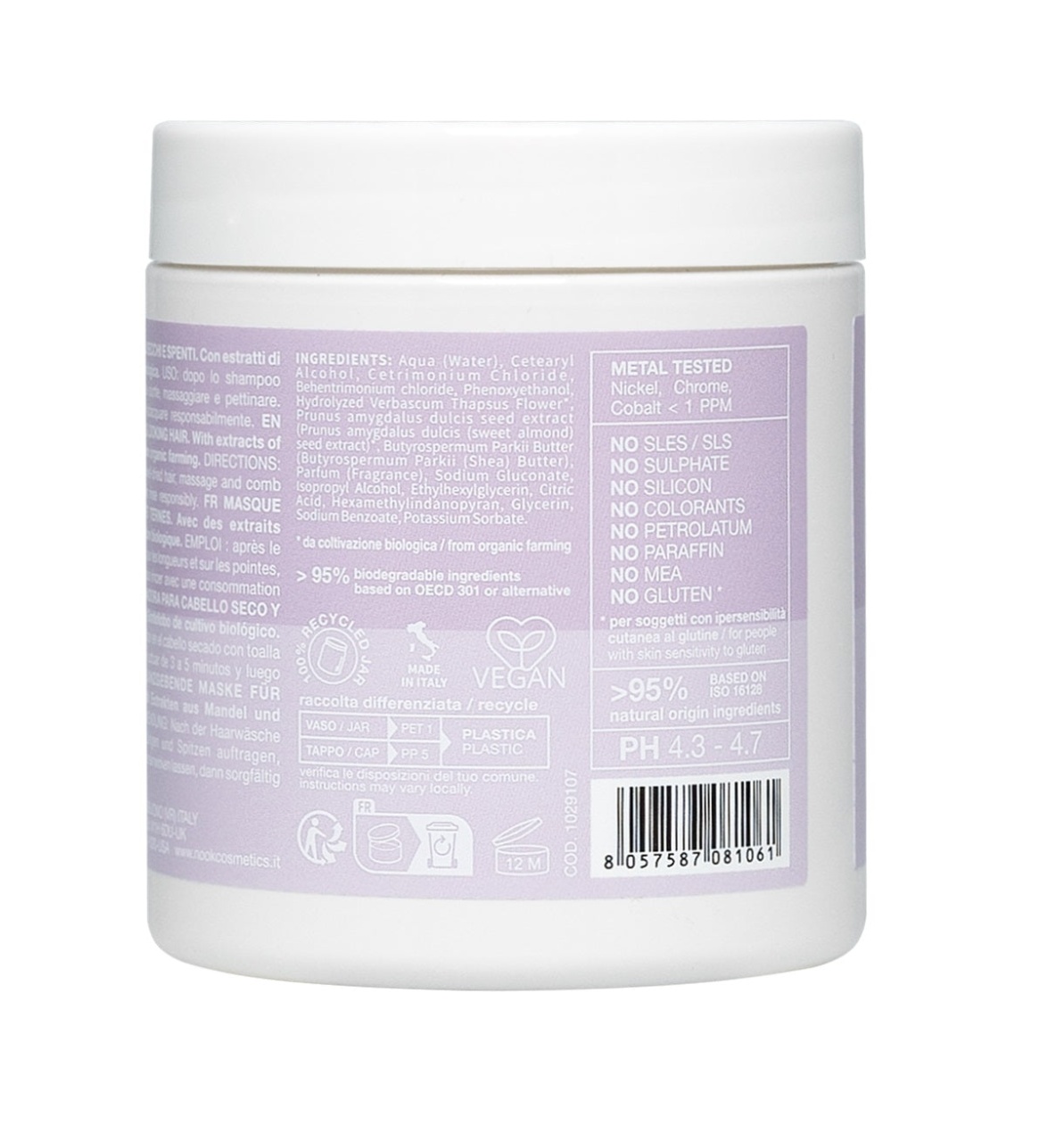 Nook Beauty Family Harmony Illuminating Hair Mask – Nutriție și Strălucire Organică pentru Părul Uscat și Lipsit de Vitalitate Nook Beauty Family Harmony Illuminating Hair Mask este o mască profesională organică , formulată pentru a hrăni în profunzime și reda strălucirea naturală părului uscat și tern. Textura sa bogată, dar lejeră hidratează intens, fără a îngreuna firul de păr, oferindu-i elasticitate, vitalitate și un aspect mătăsos . Cu 90% ingrediente naturale și 90% biodegradabile , această mască protejează atât sănătatea părului, cât și a mediului. De ce să folosești Nook Beauty Family Harmony Illuminating Hair Mask? Această mască este soluția perfectă pentru revitalizarea părului tern , oferindu-i nutriție profundă, strălucire radiantă și protecție antioxidantă . Formula sa fără sulfați și siliconi previne deshidratarea și protejează culoarea cosmetică. Beneficii ✔️Produs organic, vegan și sustenabil , formulat cu ingrediente naturale ✔️Oferă strălucire intensă și un aspect sănătos , fără a îngreuna părul ✔️Hrănește și hidratează firul de păr , prevenind uscarea excesivă ✔️Îmbunătățește elasticitatea și suplețea părului ✔️Formula Clean Plus – fără SLES/SLS, parabeni, siliconi, sulfați, parafine sau coloranți artificiali Ingrediente cheie Fitocomplex biosolubil de Luminița-Nopții – protejează firul de păr de razele UV și lumina albastră, transformându-le într-o sursă de strălucire naturală Extract fermentat de migdale – bogat în antioxidanți și nutrienți esențiali, hidratează, fortifică și oferă protecție firului de păr Mod de utilizare 1️⃣ Aplică o cantitate generoasă pe părul umed, proaspăt spălat 2️⃣Distribuie uniform pe lungimi și vârfuri, evitând rădăcinile 3️⃣Lasă să acționeze timp de 5-10 minute pentru un efect maxim 4️⃣Clătește bine cu apă călduță Sfat PRO Pentru un efect de strălucire intensă și protecție pe termen lung , combină masca cu șamponul și fluidul din aceeași gamă Ideală pentru părul vopsit sau expus frecvent la soare , deoarece previne deshidratarea și păstrează culoarea vibrantă Cu Nook Beauty Family Harmony Illuminating Hair Mask , oferă părului tău un tratament organic de nutriție, protecție și strălucire , pentru un aspect sănătos și revitalizat!