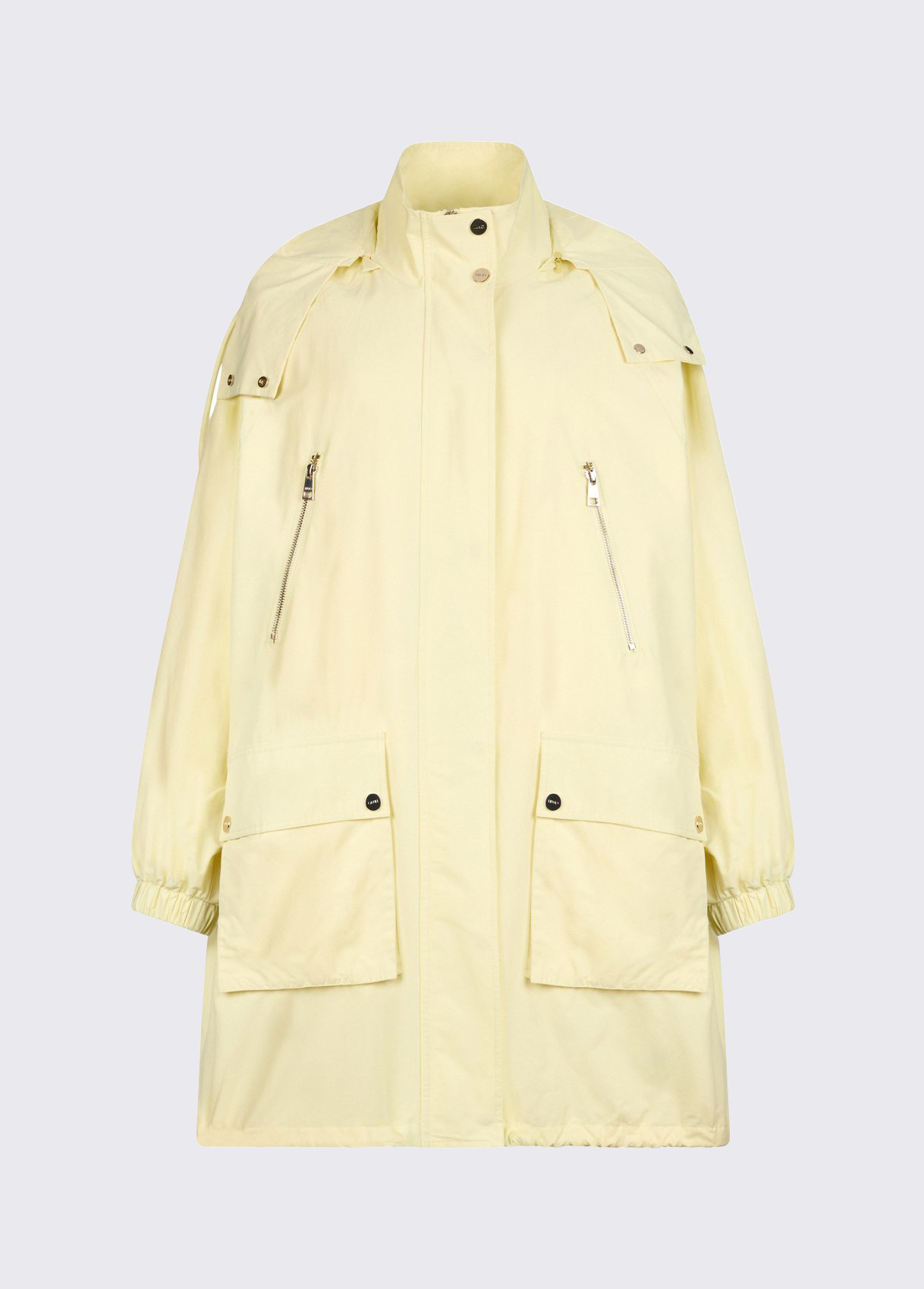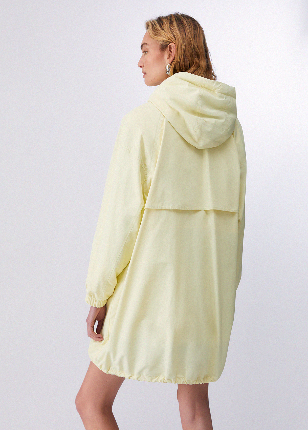 Long waterproof fabric jacket Cotton and nylon yarns Comfortable hood Flap pockets with zip Zip and snap button closure Oversized fit: for a slimmer fit, we recommend purchasing one size smaller than the one you usually wear