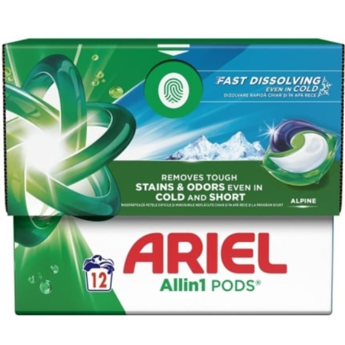 Capsulele de detergent Ariel Pods Base Alpine oferă o soluție eficientă pentru spălarea hainelor. Formula lor concentrată asigură curățarea profundă și îndepărtarea petelor, lăsând hainele cu un miros proaspăt de munte.