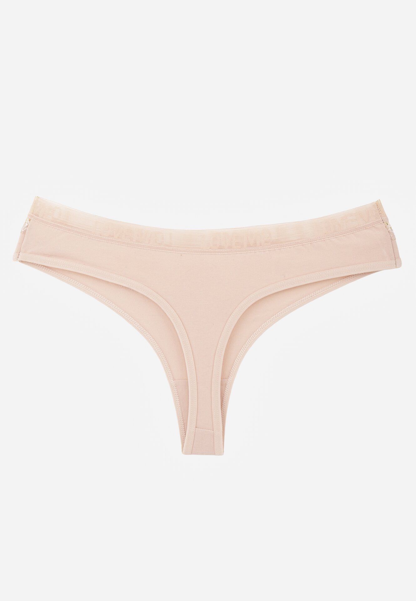 Chiloți string bej din bumbac decorați cu dantelă Thelanthe