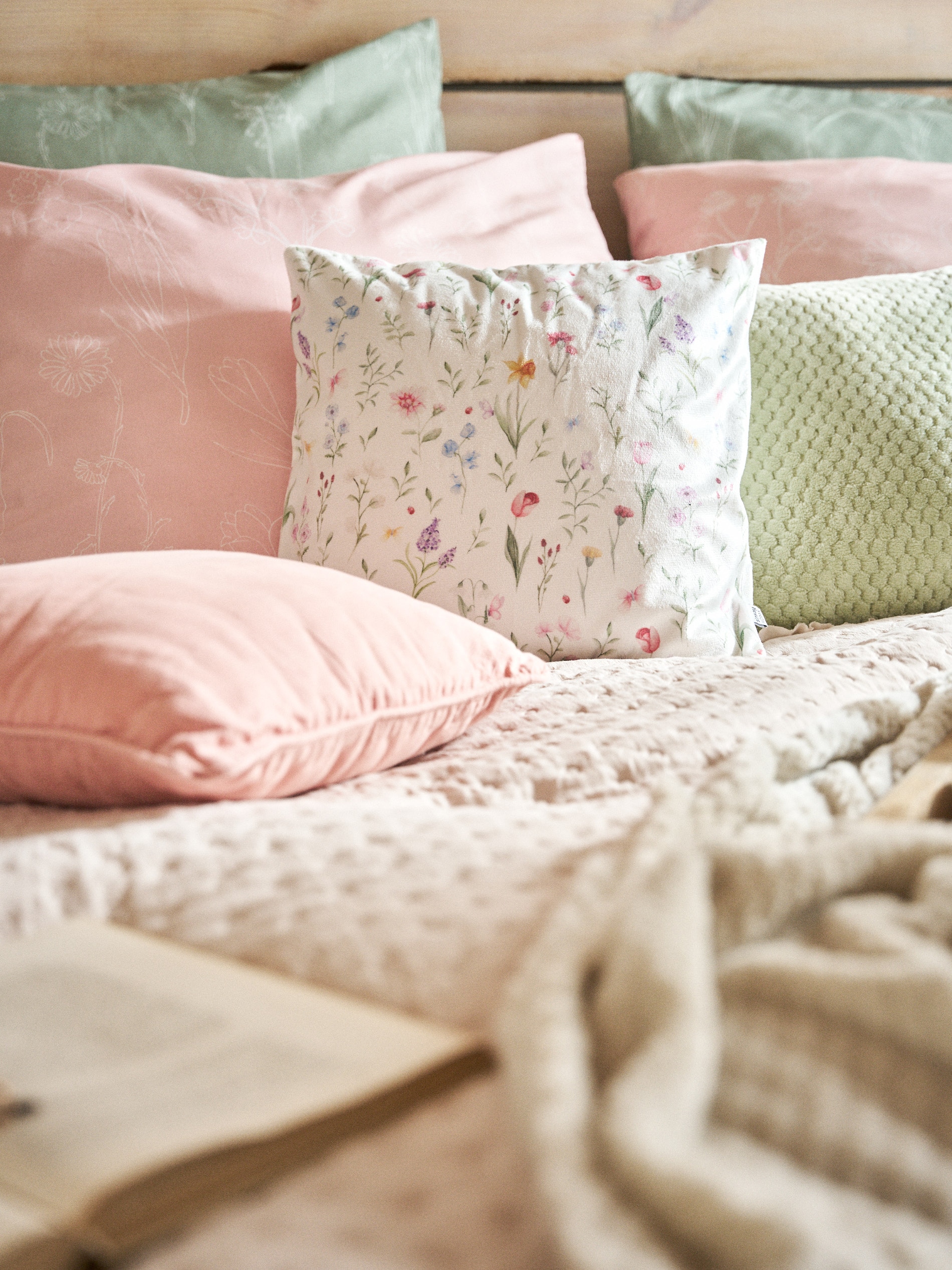 Sinsay - Față de pernă cu model floral - crem