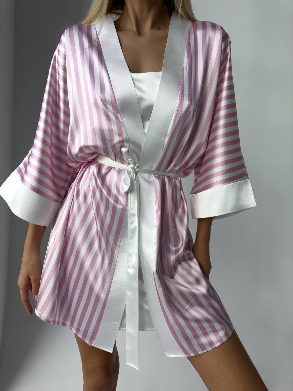 Descoperă rafinamentul absolut cu acest set elegant de neglijeu și halat pentru damă , creat pentru momentele în care confortul întâlnește feminitatea. Realizat din material fin și plăcut la atingere, setul îmbracă delicat silueta, oferind o senzație de lejeritate și eleganță. Neglijeul are o croială fluidă, ce evidențiază formele naturale, în timp ce halatul completează perfect ținuta, adăugând un plus de stil și sofisticare. Detaliile atent lucrate transformă acest set într-o alegere ideală atât pentru serile speciale, cât și pentru momentele de relaxare de acasă. Perfect pentru a fi purtat în intimitatea căminului sau oferit cadou unei persoane dragi, acest set reprezintă combinația ideală între confort, eleganță și feminitate. Deoarece are o croială lejeră, comandă mărimea exactă. Detalii produs: Tip produs: Halat & Camasa de noapte Set: 2 piese Material: 95% Poliester, 5% Elastan Aspect material: Satin Croi: Lejer Instrucțiuni de întreținere: Spălare la maximum 30°C Program delicat / rufe sintetice Nu se înălbește Nu se usucă în uscător Țara de origine: Turcia Important : Culoarea produsului poate varia ușor datorită luminozității monitorului. Din cauza varietății instrumentelor de măsură, pot exista ușoare erori de cm, informațiile de mai sus sunt aproximative.
