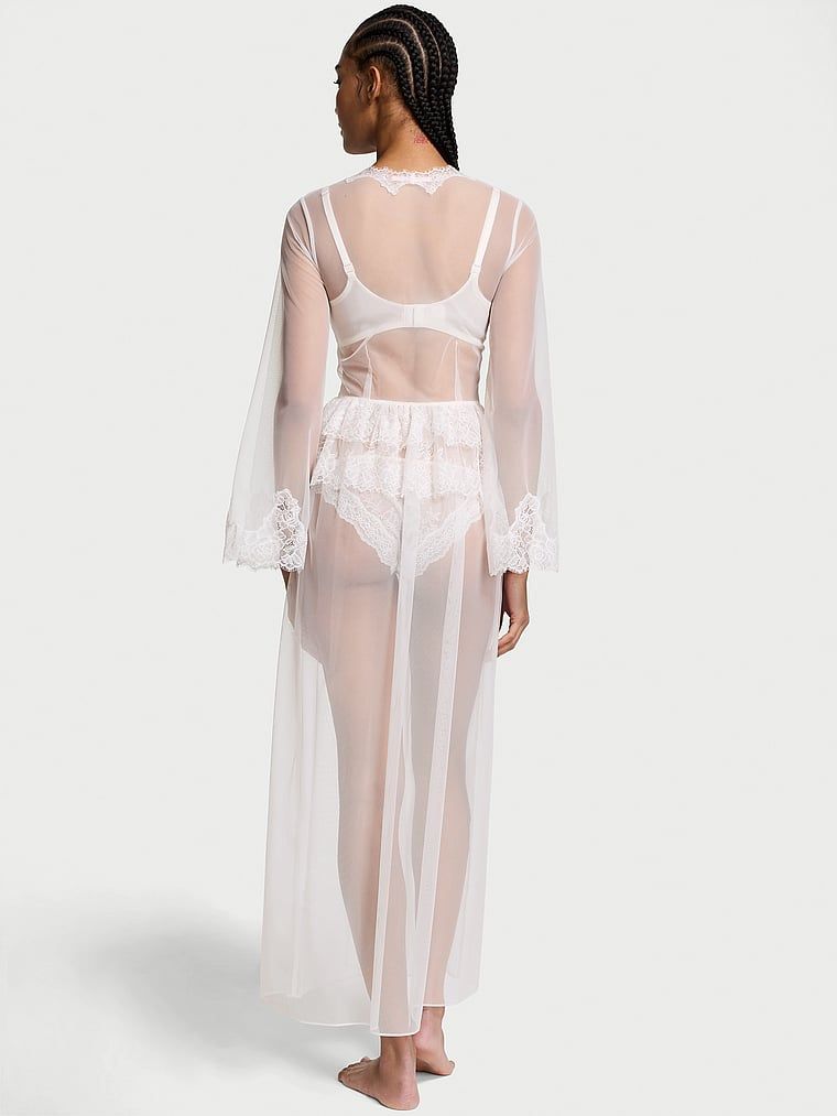 Victorias Secret Halat lung cu corset din tul și dantelă în formă de trandafir