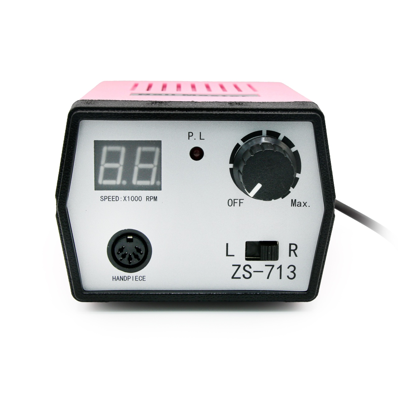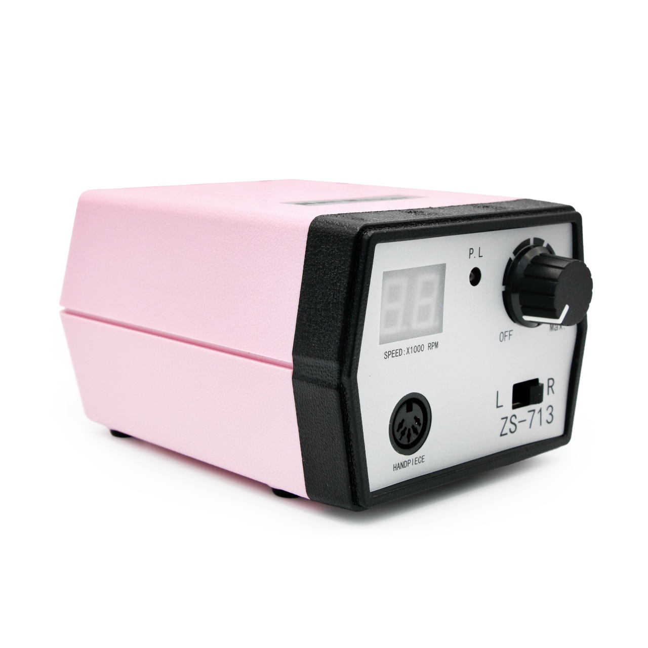 Freza de unghii ZS-713 este o freza de calitate, indeplinita la cele mai inalte standarte si apreciata pozitiv pe piata. Aparatul atribuie multiple intrebuintari pentru realizarea manichiurei si pedichiurei perfecte. Recomandata pentru scurtarea unghiilor extinse si naturale, pilirea gelului, tratarea cuticulelor si perfect se ispraveste cu tratarea bataturilr, calusurilor si crapaturilor in procesul de pedichiura. Pila electrica unghii are o viteza de pana la 35.000 rotatii pe minut. Datorita acesteia timpul de lucru va fi diminuat, asigurat cu rezultate admirabile. Aparatul nu se supraincalzeste, dar viteza de rotatie 35.000 ii incredinteaza un timp de slujire indelungat. Unitatea centrala are un design modern si practit, produs din materiale de calitate. Pe ea se gasesc functiile utilizare, buton reglare putere facandu-se prin rotirea butonului de la stinga la dreapta, buton reglare sens rotatie (doua sensuri). Deasemenea este prezenta si functia pedala. Aparatul dispunde de ecran digital care afiseaza sensul de rotatie si viteza. Una dintre cele mai principale piese a frezei electrice este mandrina. Aceasta are o greutate optima, usor de manevrat in orice pozitie, nu vibreaza in timpul intrebuintarii si este robusta. Schimbarea capetelor de lucru se efectuiaza intru-un mod comod si foarte rapid. Freza de unghii detine un cablu de alimentare personal, astfel poate fi uzata in salon sau acasa. Freza poseda si diverse bituri, pentru a obtine un rezultat de exceptie. Freza electrica unghii poate fi intrebuintata atat de mesteri profesionisti, cat si de cei pasionati de intrijirea unghiilor. Pila electrica manichiura are un design compact si practic, astfel nu va ocupa mult loc pe masa de manichiura. Are un aspect original, in culoarea sa rosie, acesta se va incorpora ideal pe masa de manichiura. Continut pachet: unitatea centrala, mandrina, suport pentru mandrina, pedala, 6 x capete de freza, 6 x capete de slefuit cilindrici, suport bituri, manual de utilizare. Caracteristici: Tip produs: freza electrica Zona corporala compatibila: unghii Putere: 65 W Viteza (rotatii pe minut): 35000 RPM Tensiune de alimentare: 220-230 V Frecventa: 50 Hz Dimensiune unitate centrala: 14,5 x 13 x 9,2 cm Greutate unitate centrala: 1530 g Display digital Alimentare: la retea Culoare: roz