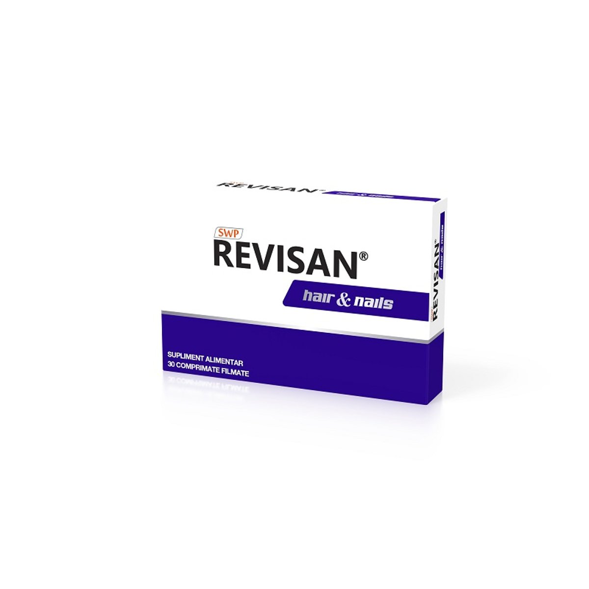 Rolul componentelor din SWP Revisan hair&nails: Peptidele din colagen se obtin prin hidrolizarea colagenului. Contin toti aminoacizii cu exceptia triptofanului. Colagenul contribuie la functionarea normala a vaselor de sange, a sistemului osos, a ligamentelor, pielii, gingiilor si dintilor. Extractele de Ceai verde si de seminte de struguri contin substante cu rol antioxidant, care protejeaza celulele de efectele negative ale radicalilor liberi. Vitaminele si mineralele contribuie la: - mentinerea sanatatii membranelor mucoase si a pielii: niacina, biotina - mentinerea sanatatii parului si unghiilor: seleniu, zinc - sinteza normala si la metabolizarea hormonilor steroizi, a vitaminei D si a unor neurotransmitatori: acid pantotenic - formarea normala a colagenului, la protejarea celulelor impotriva stresului oxidativ si la cresterea absorbtiei fierului: vitamina C - mentinerea sanatatii pielii: biotina, zinc - formarea normala a globulelor rosii si a hemoglobinei si la transportul normal al oxigenului in corp: fier - sinteza normala a aminoacizilor si la procesul de diviziune celulara: acid folic - sanatatea tesuturilor conjunctive si pigmentarea normala a parului si a pielii: cupru - metabolismul normal al proteinelor si al glicogenilor si la sinteza normala a cisteinei: vitamina B6 - sinteza normala a proteinelor: zinc Ceilalti nutrienti adaugati (L-lizina, L-metionina, L-cinsteina, inozitol, Colina) potenteaza efectele vitaminelor si mineralelor din compozitie. Mod de utilizare: Oral - 1 comprimat pe zi, dupa masa. Nu se consuma pe stomacul gol. Nu consumati alte produse care contin ceai verde, in aceeasi zi. Ingrediente: Fiecare comprimat contine: Ingredient / Cantitate Peptide din colagen - 175 mg, L-metionina - 40 mg, Acid pantotenic - 25 mg, Niacina - 20 mg, Vitamina C - 15 mg, Extract de Ceai verde - 10 mg, Extract din seminte de struguri - 10 mg, Biotina - 10 000 mcg, L-lizina - 10 mg, L-cisteina - 10 mg, Inozitol - 10 mg, Colina bitartrat - 10 mg, Fier - 7,5 mg, Zinc - 7,5 mg, Acid folic - 2000 mcg, Cupru - 2 mg, Siliciu - 2 mg, Vitamina B6 - 1,5 mg, Seleniu - 50 mcg Atentionari si precautii: •Suplimentele alimentare nu inlocuiesc o dieta variata si un stil de viata sanatos. •Nu depasiti doza zilnica recomandata. •Pastrati departe de copii. •Consumati inainte de data expirarii de pe ambalaj. •Contine ingrediente derivate din soia. •Doar pentru adulti, exclusiv barbati. •A se pastra la temperaturi intre 15 si 25 grade C •A se feri de lumina si umezeala
