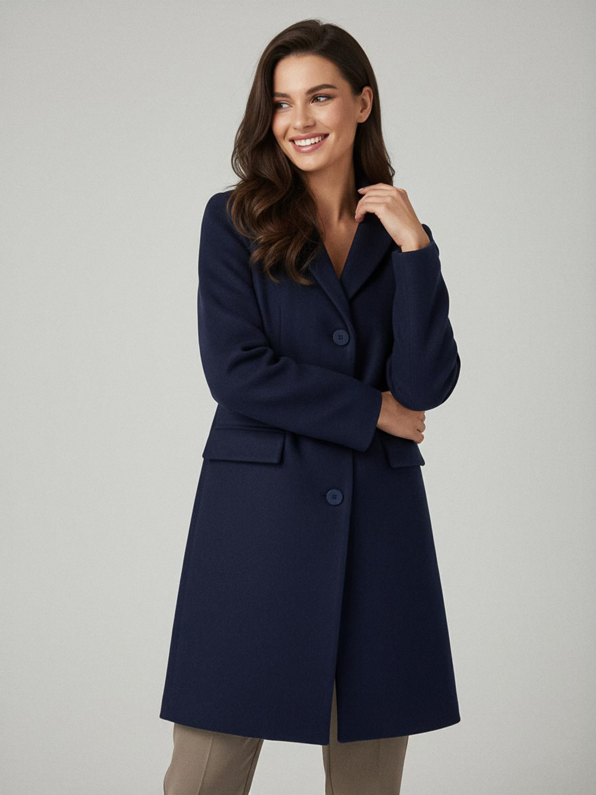 Sinsay - Palton lung cu amestec de lână - bleumarin
