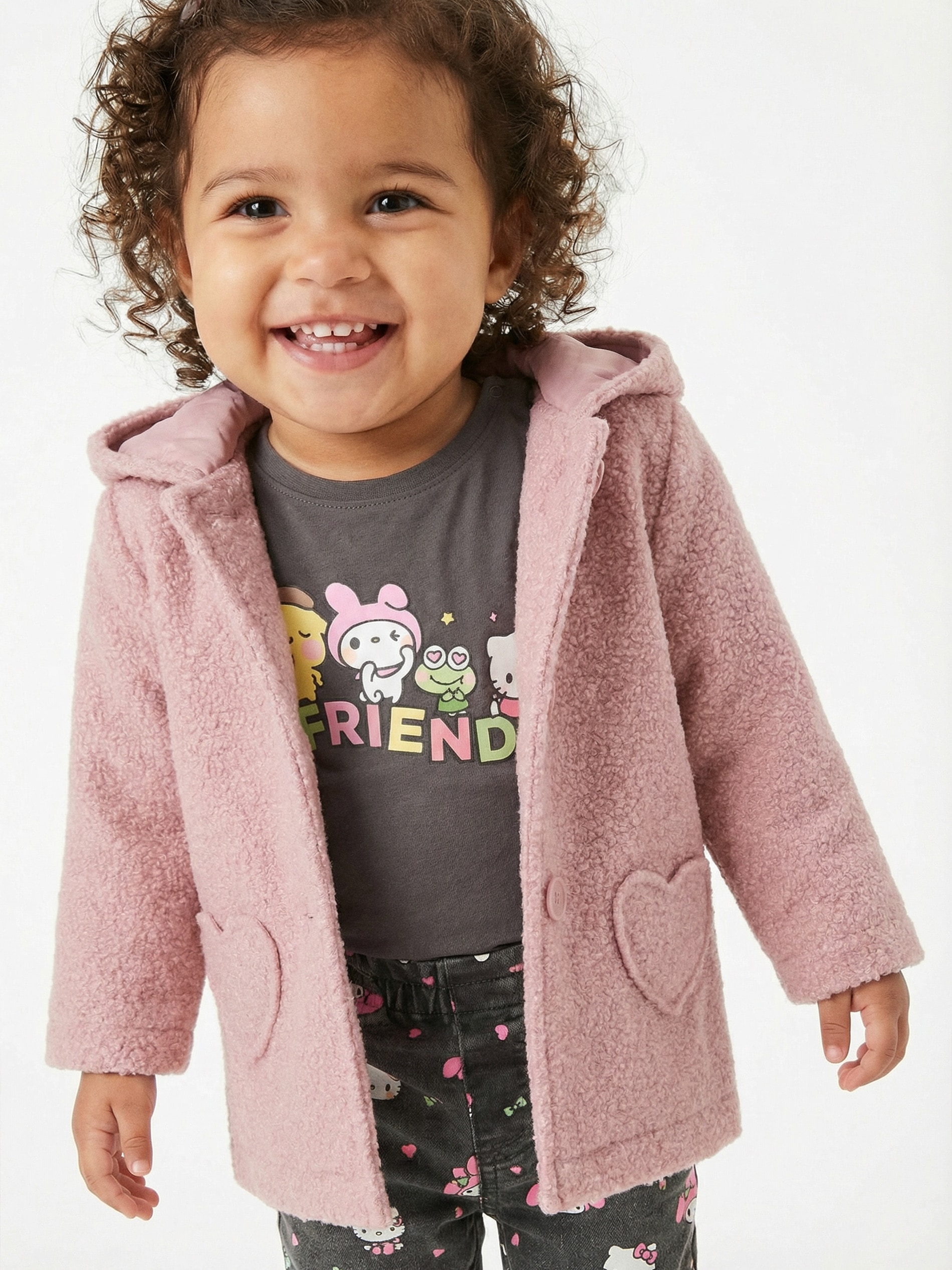 Sinsay - Palton lungă, cu glugă - roz-pastel