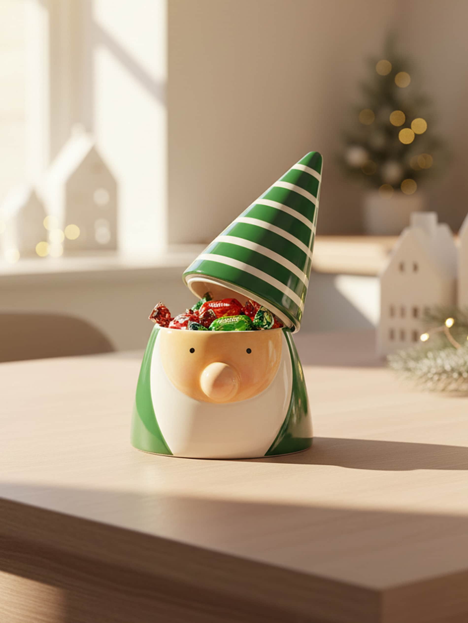 Sinsay - Recipient alimentar de Crăciun cu capac și motiv de elf - verde