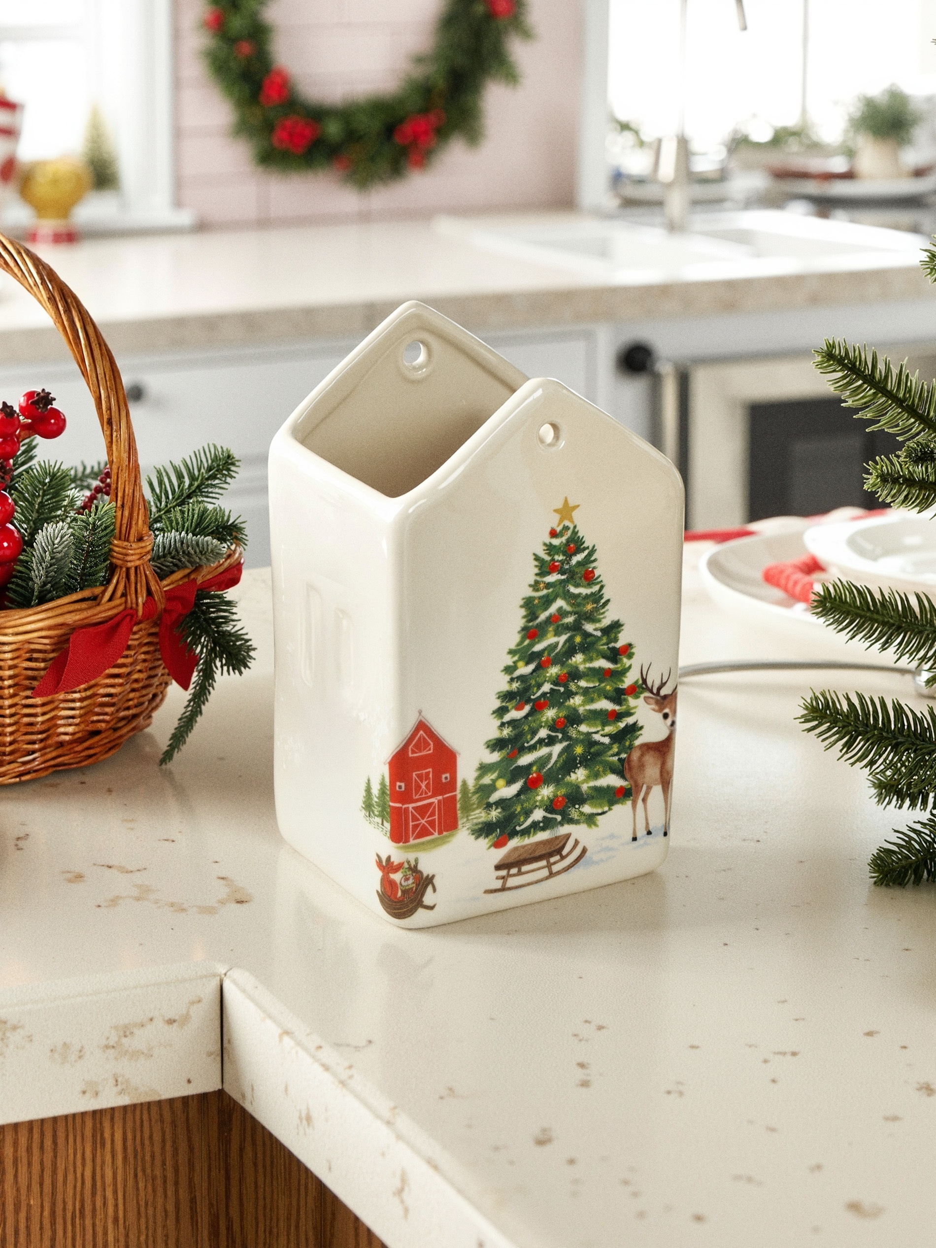 Sinsay - Recipient pentru alimente în formă de căsuță cu brad și ren - alb