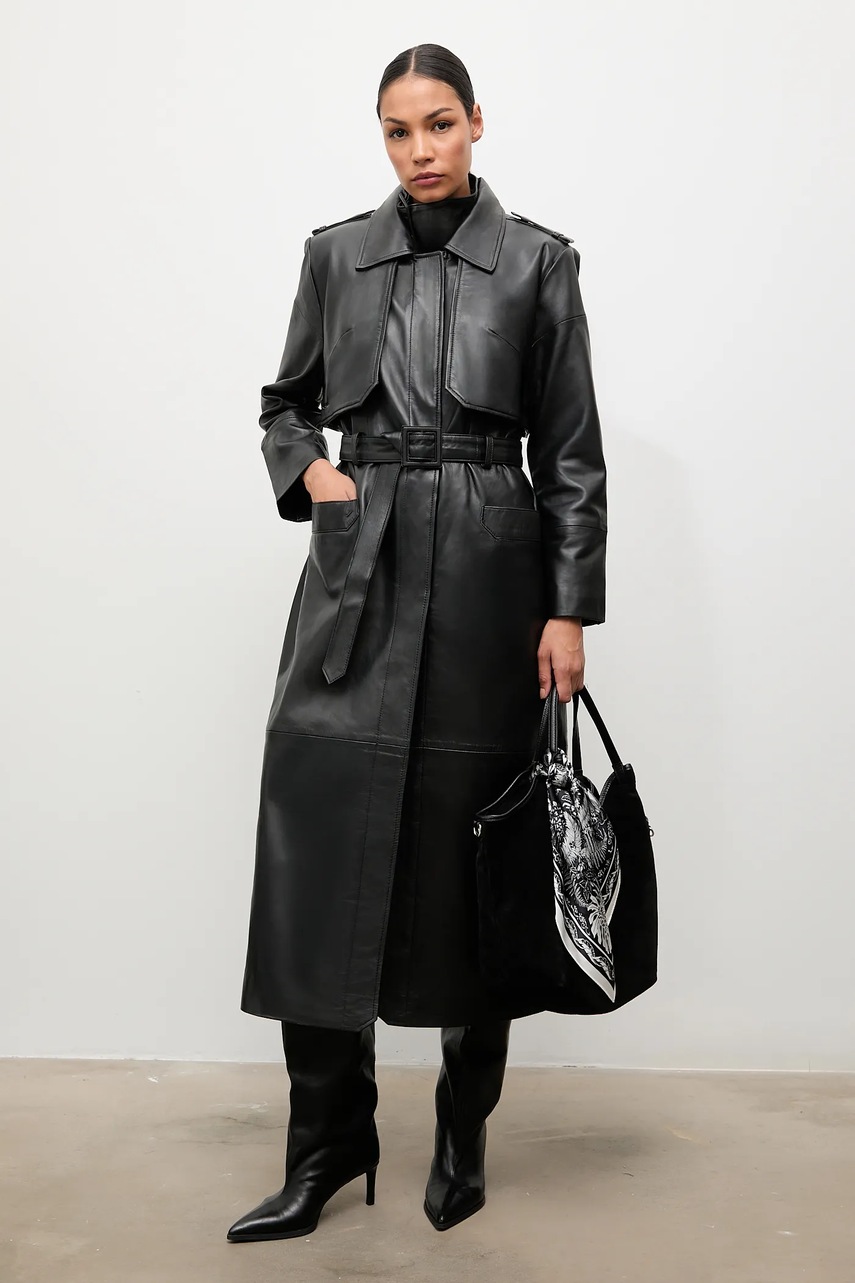 Trenci din colecția Answear. LAB. Model neizolat confecționat din din piele naturala. Materialul din piele este durabil și rezistent la umiditate.