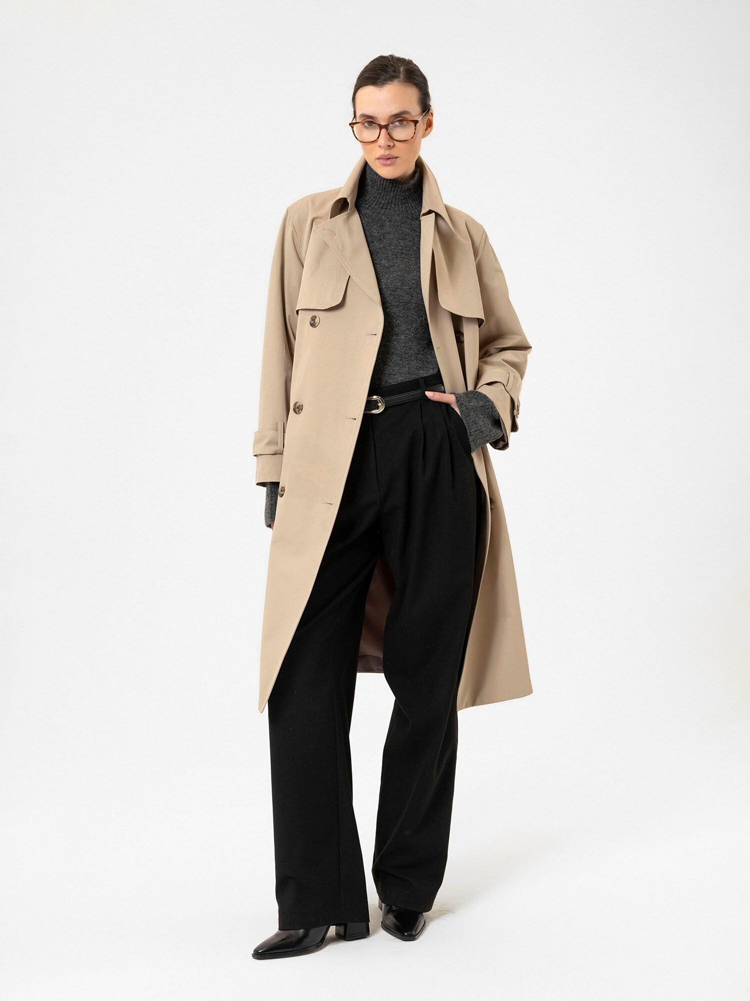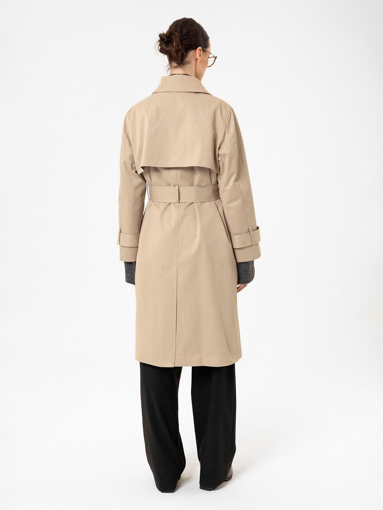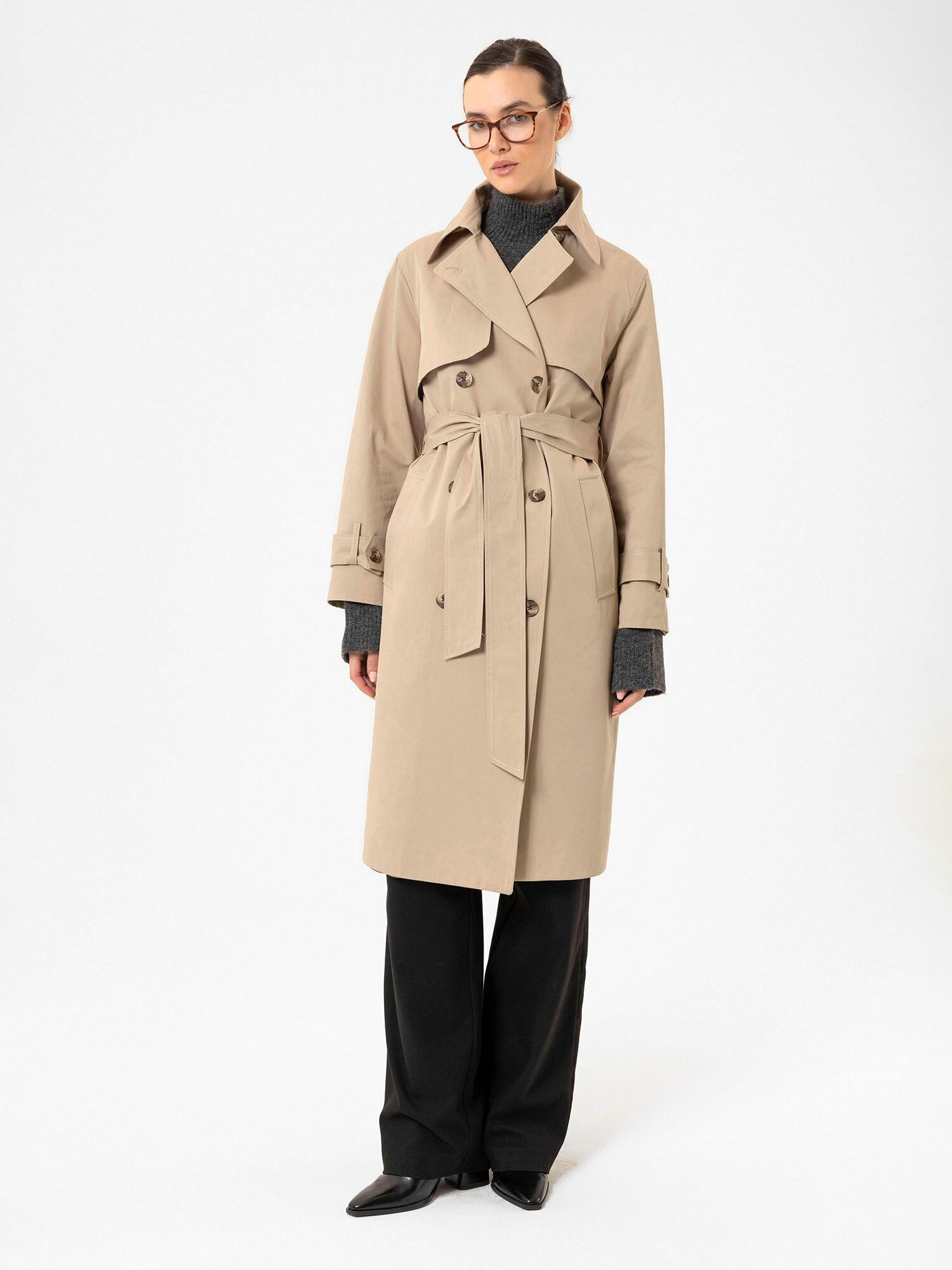 Modelul paltonului: Trenci; Design: Manșetă cu 1 nasture, Tiv drept, Croi drept, Guler rever, Guler întors, Cu curea, Închidere cu nasturi, Necktape; Tip de închidere: Închidere cu nasturi; Căptușeală: Căptușit parțial; Material: Bumbac; Imprimeu: Monocrom; Detalii: Cusături ton în ton, Material delicat; Croi: Croi normal; Lungime: Lungime normală