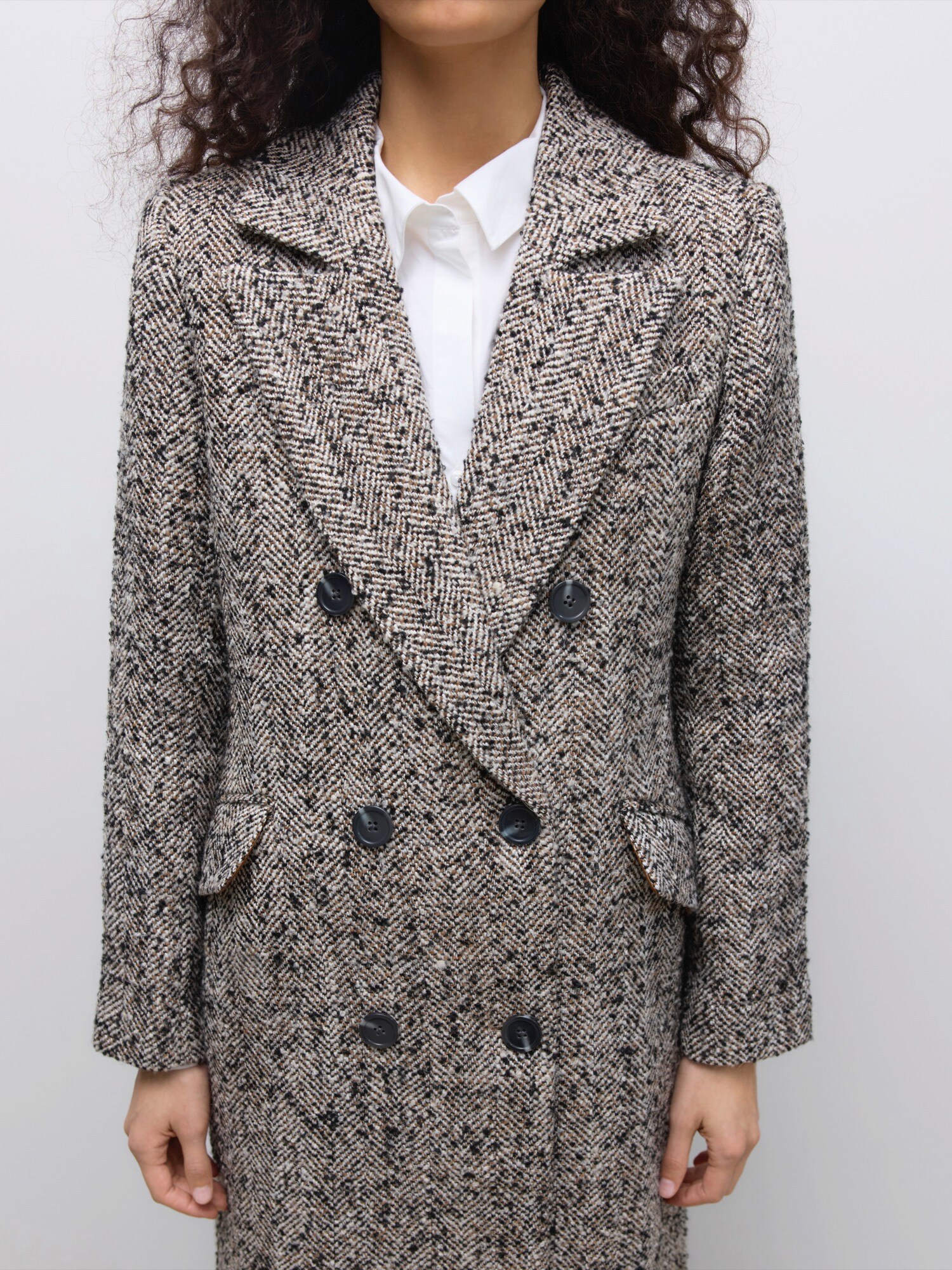 Modelul paltonului: Palton clasic; Design: Șir de nasturi, Guler rever, Buzunare rabatabile; Tip de închidere: Închidere cu nasturi; Căptușeală: Căptușit parțial; Material: Material reciclat; Imprimeu: Spic; Detalii: Imprimat în totalitate, Material greu; Croi: Croi normal; Lungime: Lungime normală