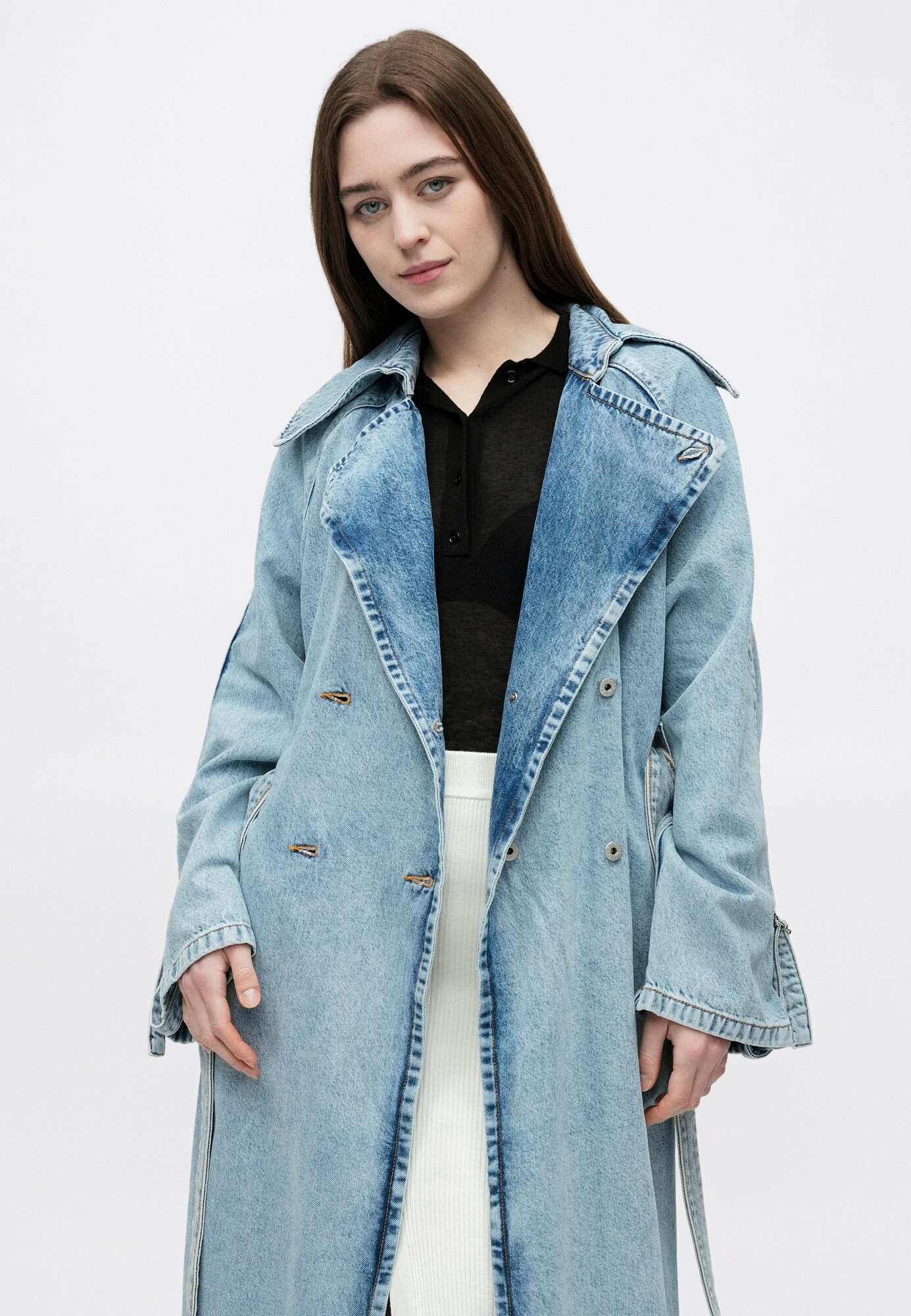 Modelul paltonului: Palton clasic; Design: Tiv/ margine tighelită, Guler rever; Tip de închidere: Închidere cu nasturi; Căptușeală: Necăptușit; Material: Denim; Imprimeu: Monocrom; Detalii: Efect prespălat, Material rigid; Croi: Croi normal; Lungime: Lungime normală