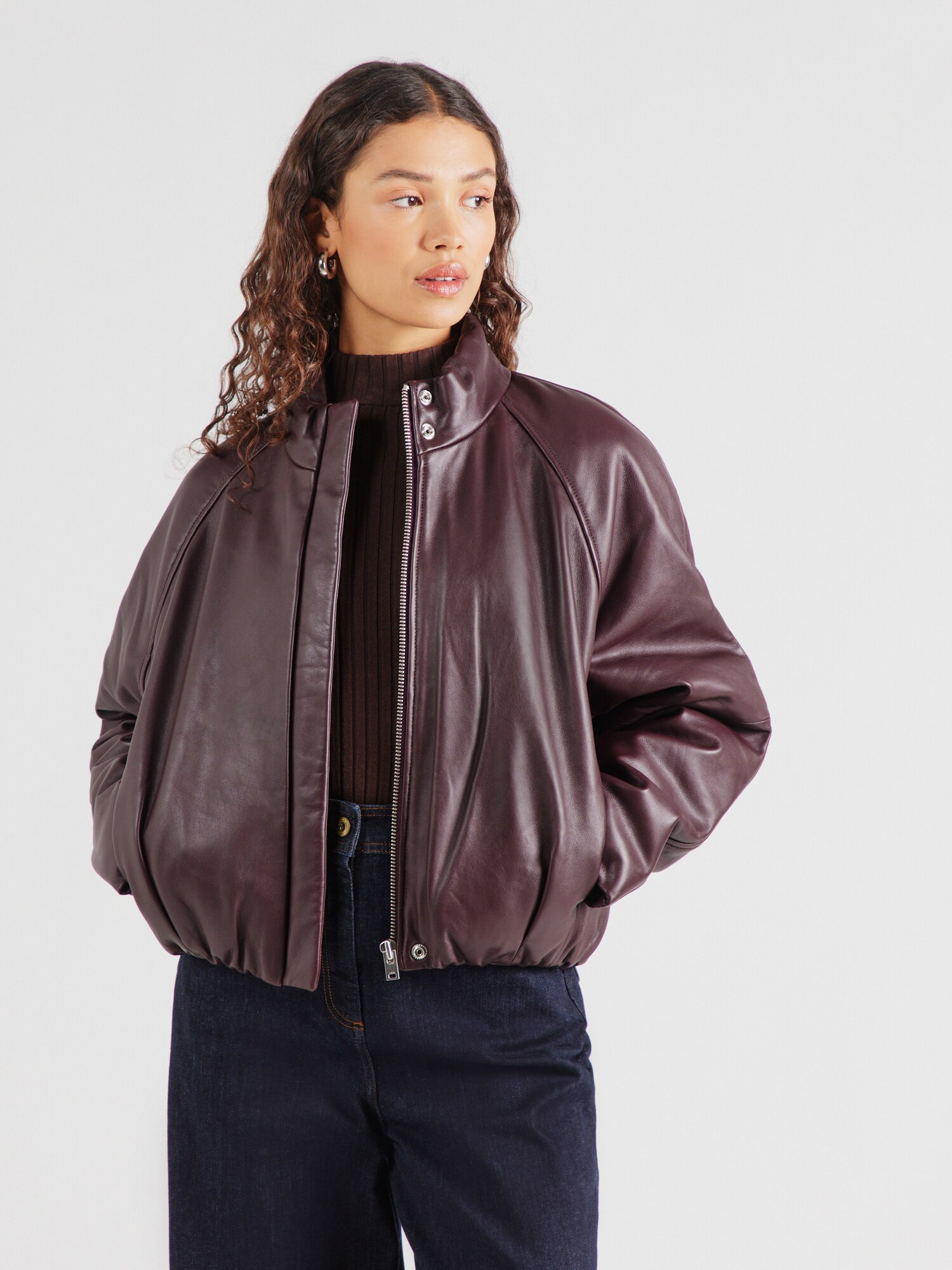 Design: Tiv drept, Mâneci raglan, Cusătură spate, Buzunare laterale deschise; Tip de închidere: Fermoar; Căptușeală: Căptușit parțial; Material: Piele; Imprimeu: Monocrom; Detalii: Cusături ton în ton, Material neted, Material rigid, Piele de miel; Croi: Croi normal