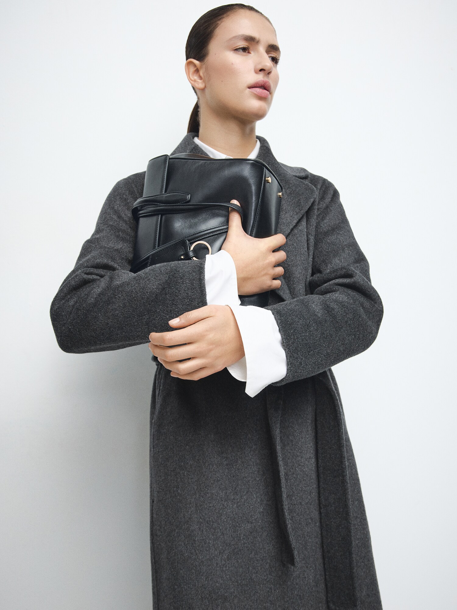 Modelul paltonului: Palton clasic; Design: Tiv drept, Guler rever, Curea în talie; Căptușeală: Căptușit parțial; Material: Lână; Imprimeu: Melanj; Detalii: Material structurat; Croi: Croi lejer; Lungime: Croi lung