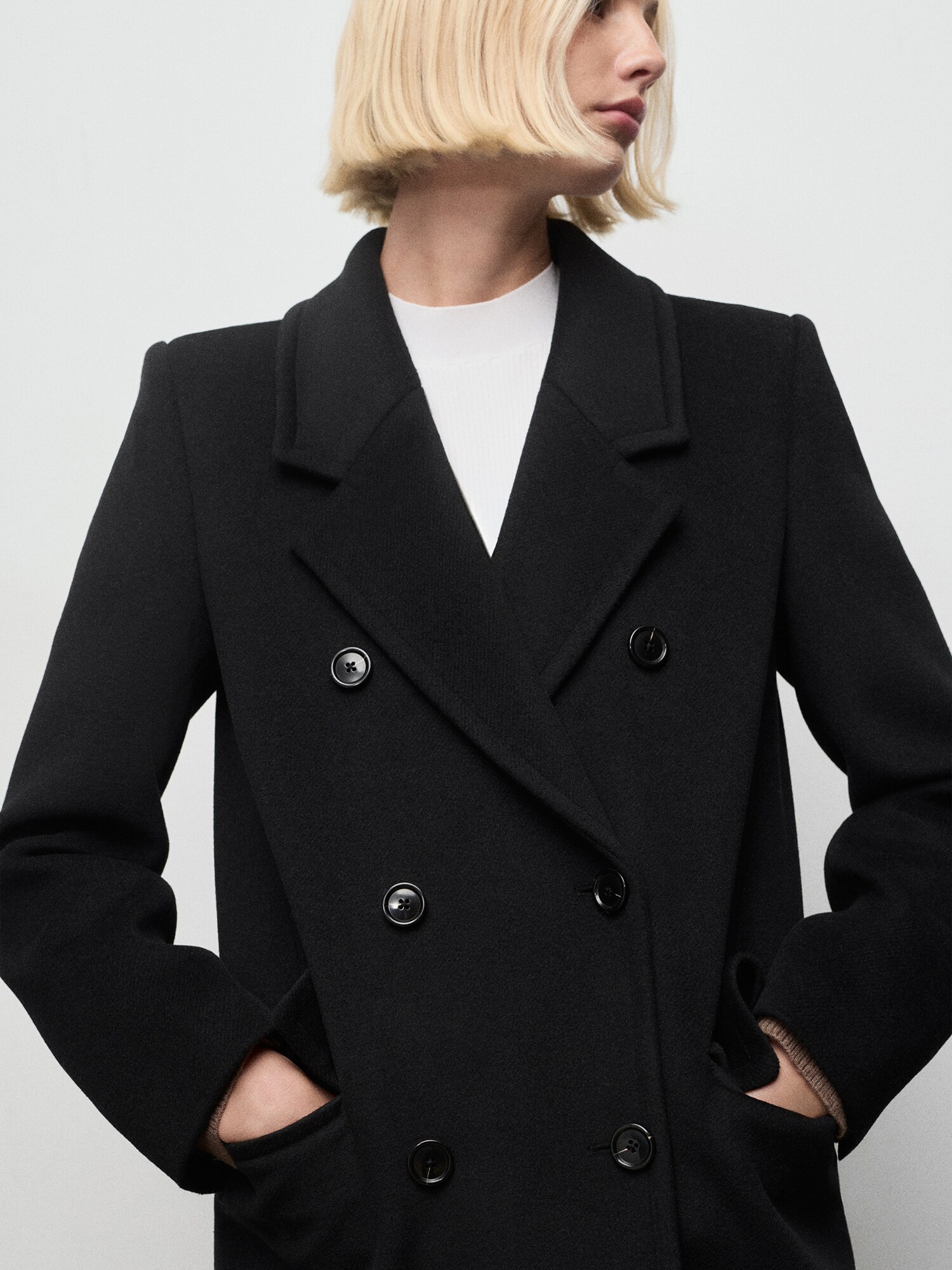 Modelul paltonului: Palton clasic; Design: Guler rever, Buzunare laterale deschise; Tip de închidere: Închidere cu nasturi; Căptușeală: Căptușit parțial; Imprimeu: Monocrom; Detalii: Material rigid, Material greu; Croi: Croi normal; Lungime: Lungime normală