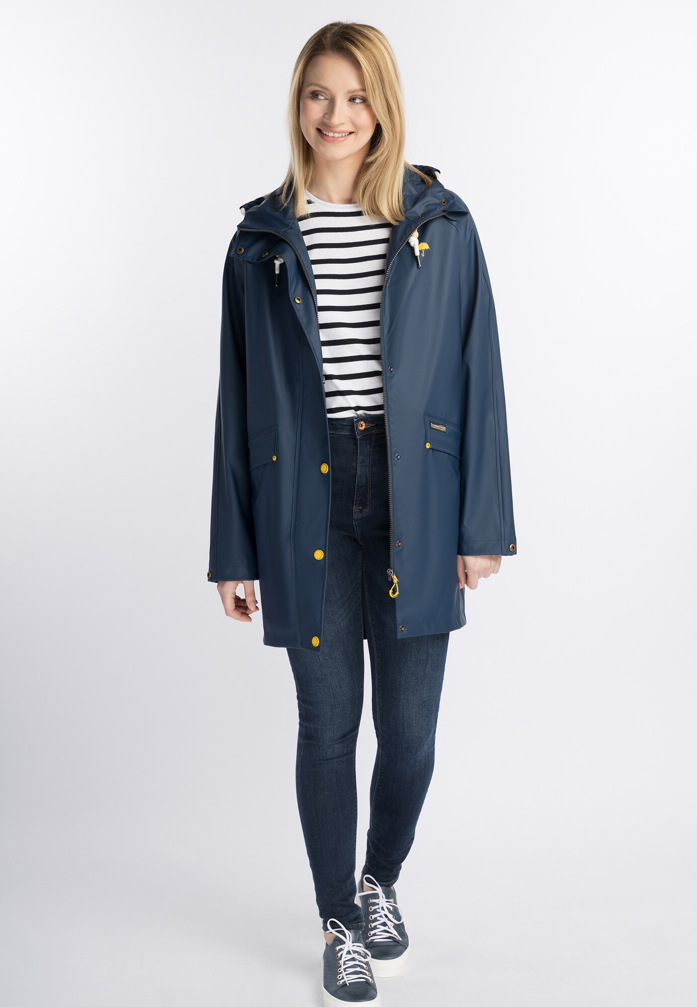 Îmbracă-te cu încredere și stil în geaca funcțională Schmuddelwedda, perfectă pentru zilele ploioase! Această pelerină de ploaie bleumarin, cu un design elegant și modern, te va proteja de intemperii, fără a compromite stilul. Fermoarul practic îți oferă o închidere simplă și rapidă, în timp ce croiul lejer și scurt te asigură că te poți mișca liber, bucurându-te de confortul oferit. Căptușită parțial, această geacă oferă o senzație plăcută pe piele, iar imprimeul monocrom adaugă o notă de rafinament. Nu lăsa vremea să te oprească! Alege geaca Schmuddelwedda și transformă fiecare ploaie într-o oportunitate de a străluci!