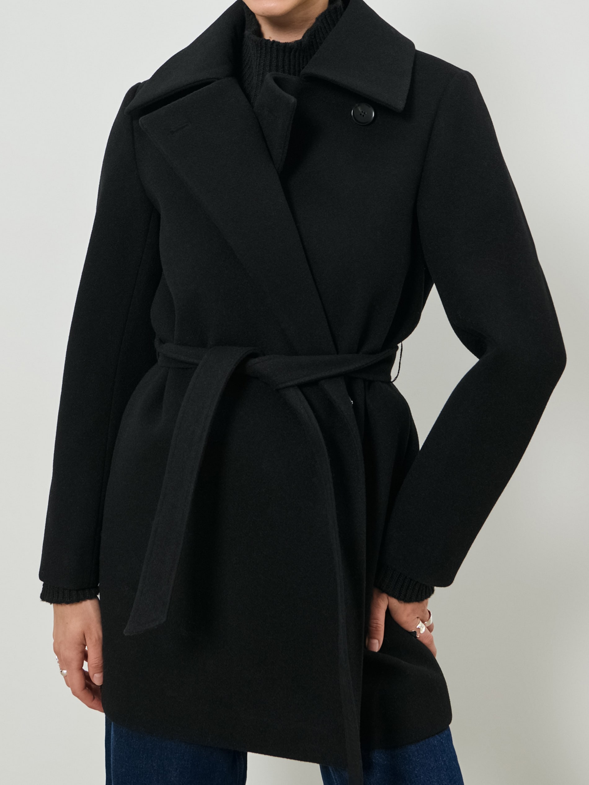 Sinsay - Palton cu cordon în talie - negru -
