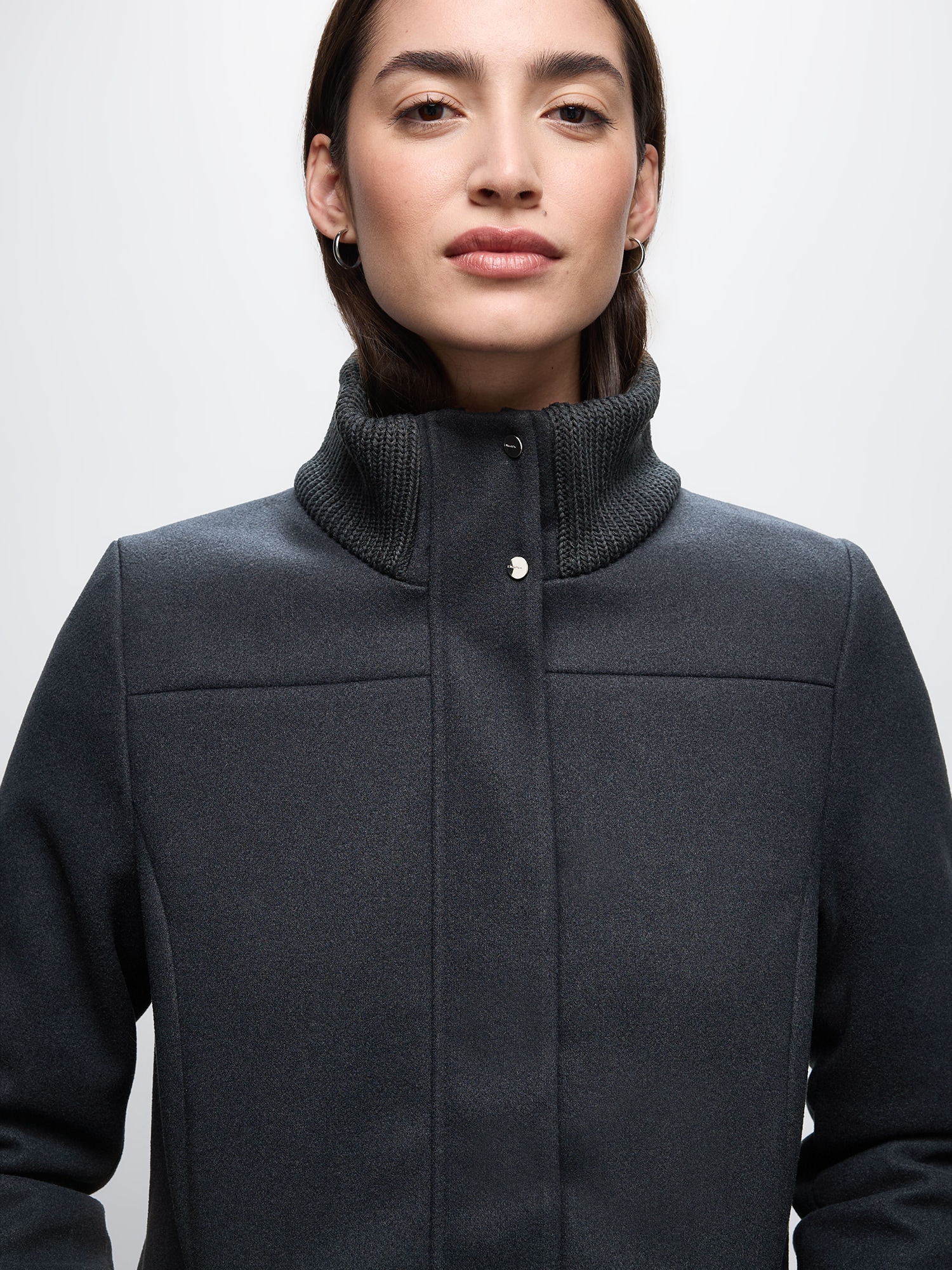Design: Fentă cu capse, Guler tunică, Fermoar ascuns, Buzunare laterale cu fermoar; Tip de închidere: Fermoar; Căptușeală: Căptușit parțial; Imprimeu: Monocrom; Detalii: Material rigid, Material greu; Croi: Croi normal; Lungime: Lungime normală