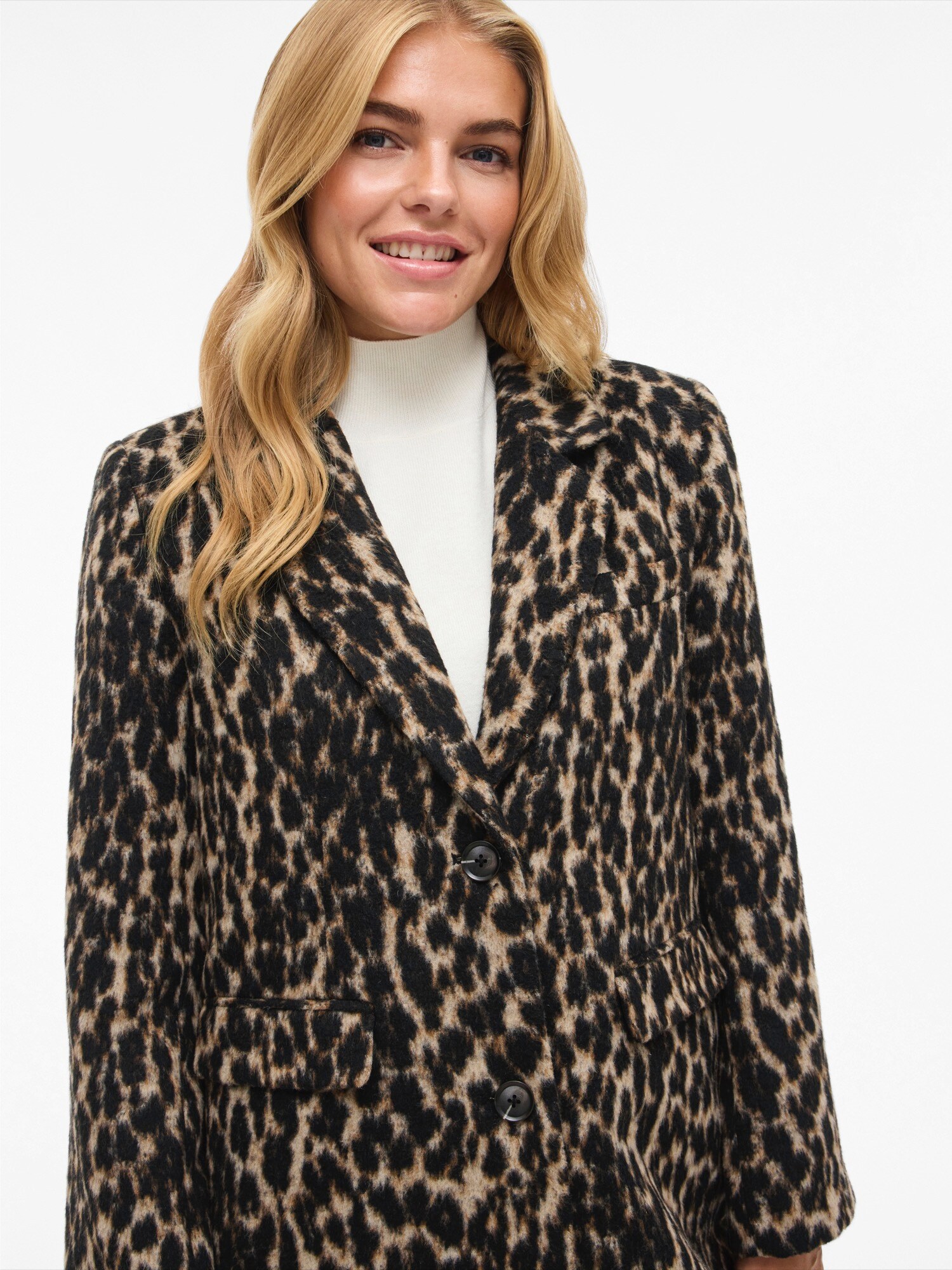 Modelul paltonului: Palton clasic; Design: Guler rever, Buzunar la piept, Buzunare rabatabile; Tip de închidere: Închidere cu nasturi; Căptușeală: Căptușit parțial; Material: Material reciclat; Imprimeu: Animalprint; Detalii: Imprimat în totalitate, Material delicat; Croi: Croi lejer; Lungime: Lungime normală